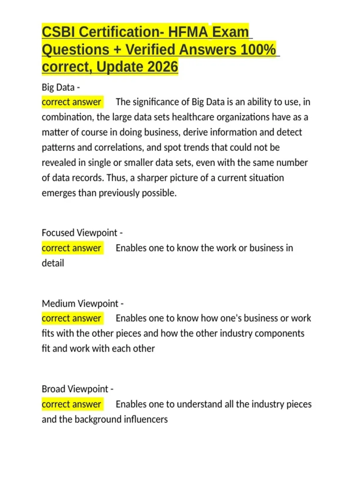 , CSBI Certification- HFMA Exam