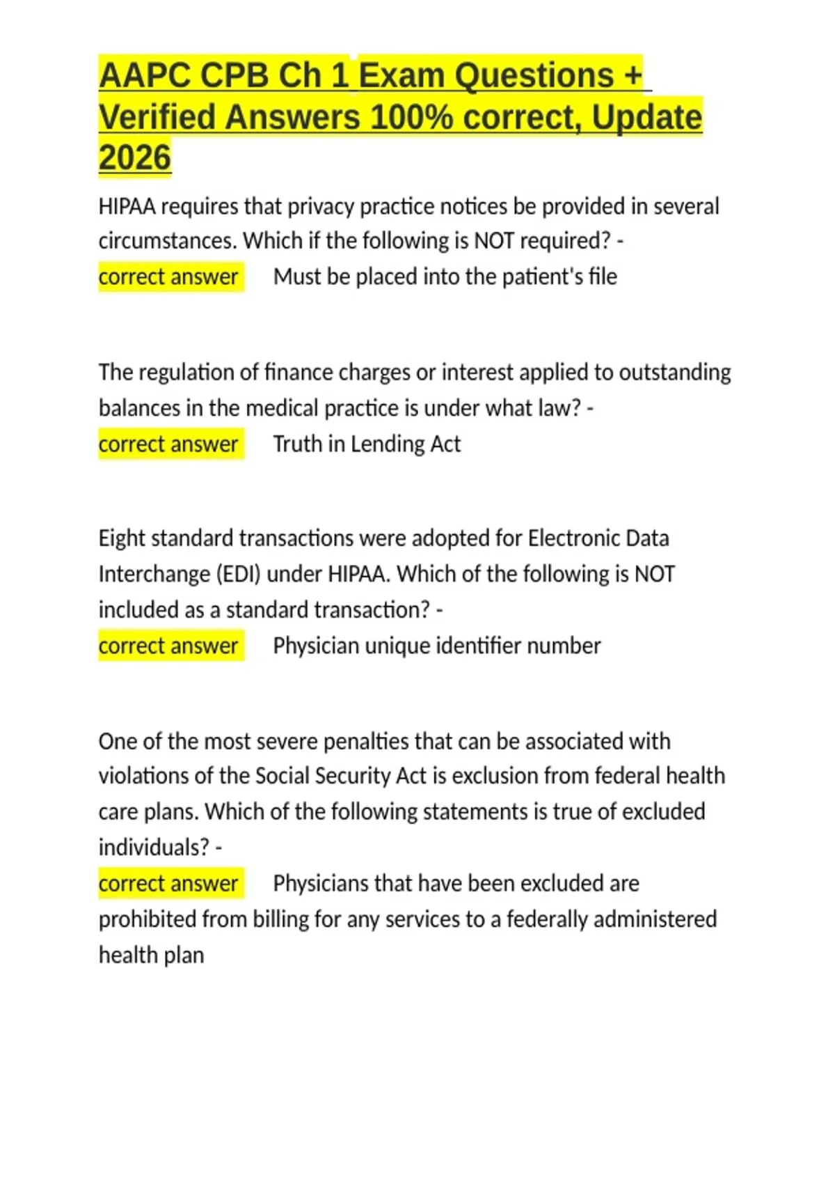 AAPC CPB Ch 1 Exam Questions + Verified Answers 100- correct, Update 2026.docx