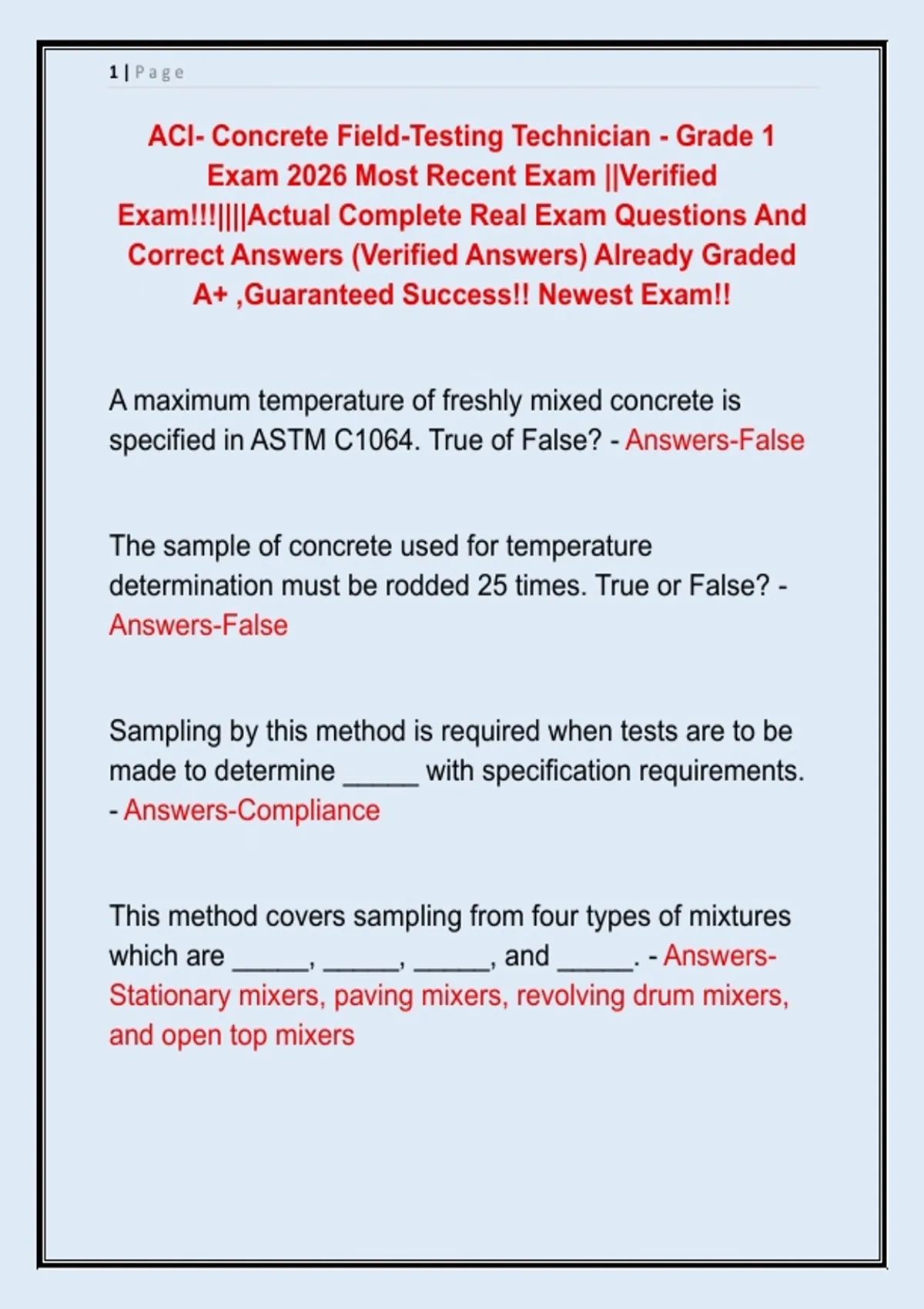 ACI- Concrete Field-Testing Technician - Grade 1