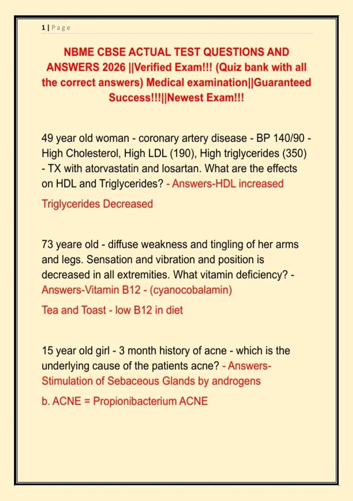 NBME CBSE ACTUAL TEST QUESTIONS AND