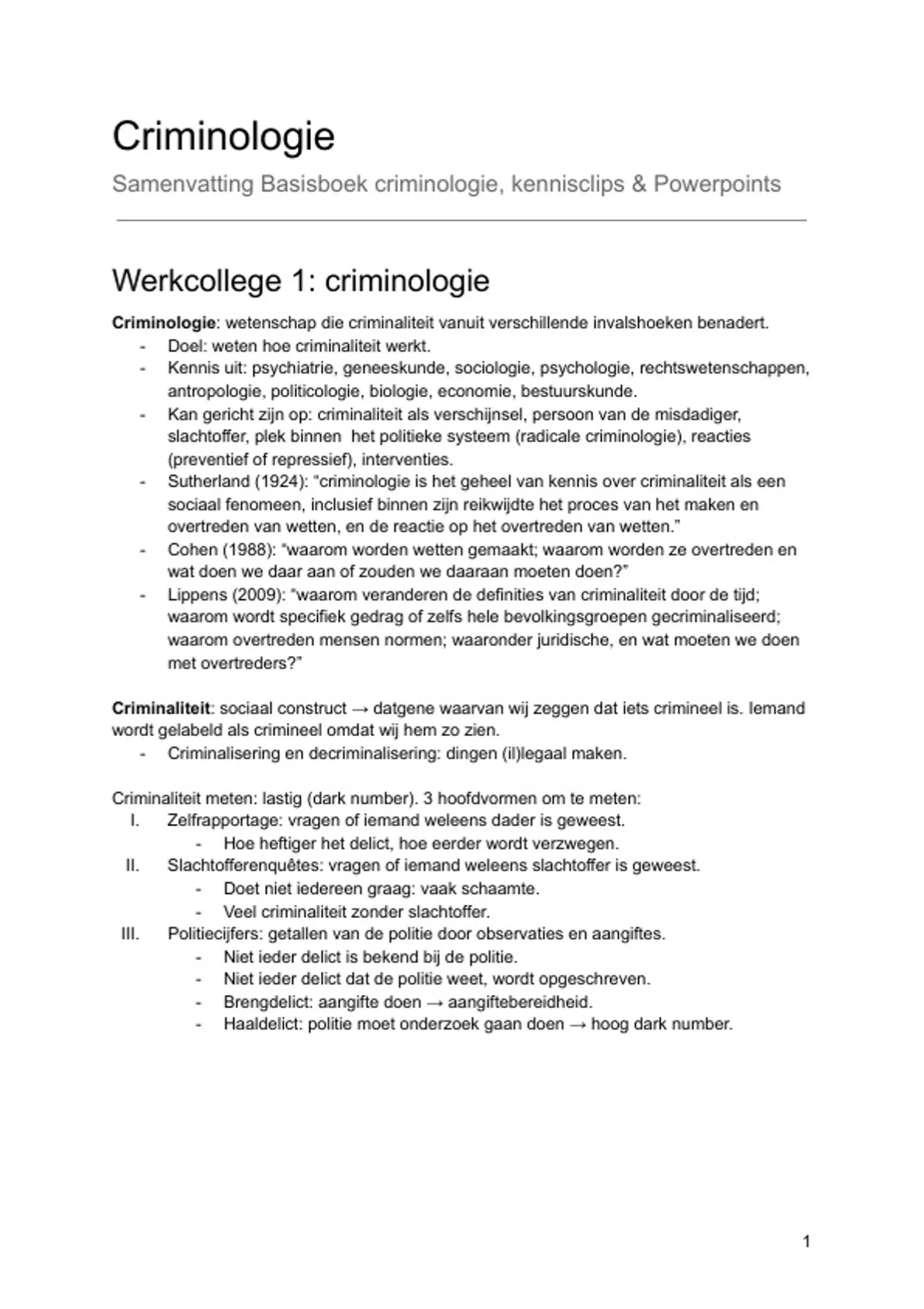 Samenvatting Basisboek criminologie, kennisclips & Powerpoints