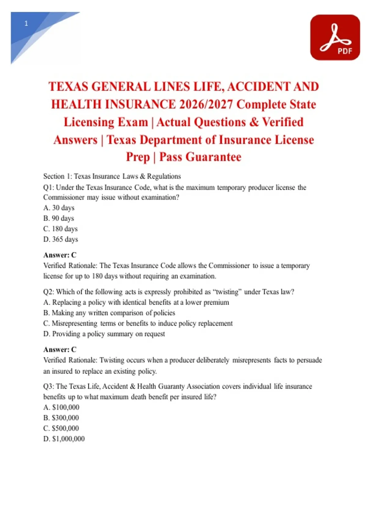 Q1: Under the Texas Insurance Code, what is the maximum temporary producer license the