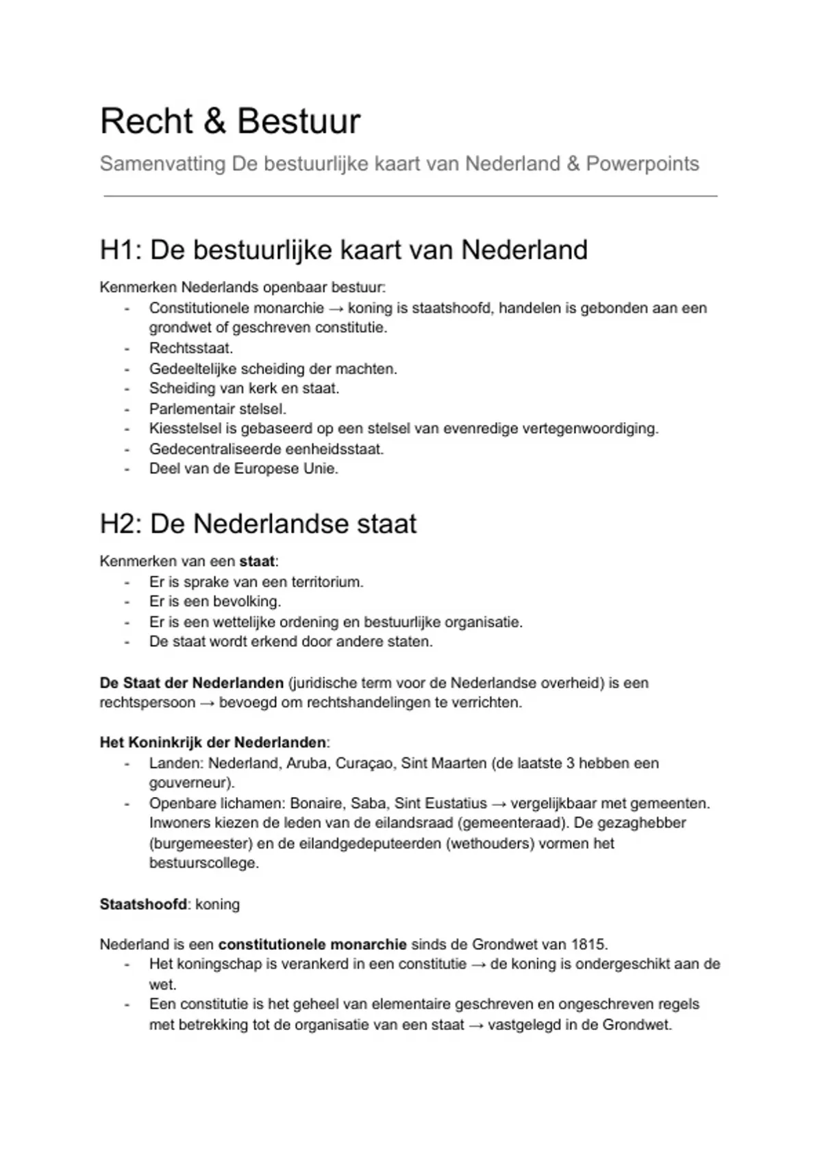 Samenvatting De bestuurlijke kaart van Nederland & Powerpoints