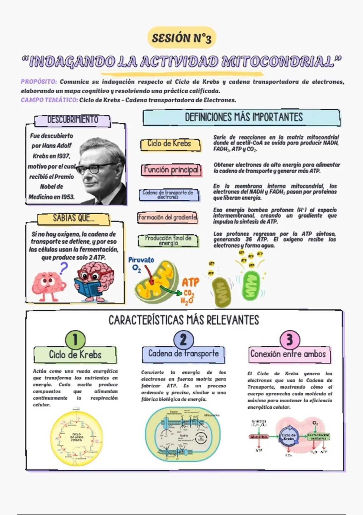 PROPÓSITO: Comunica su indagación respecto al Ciclo de Krebs y cadena transportadora de electrones,