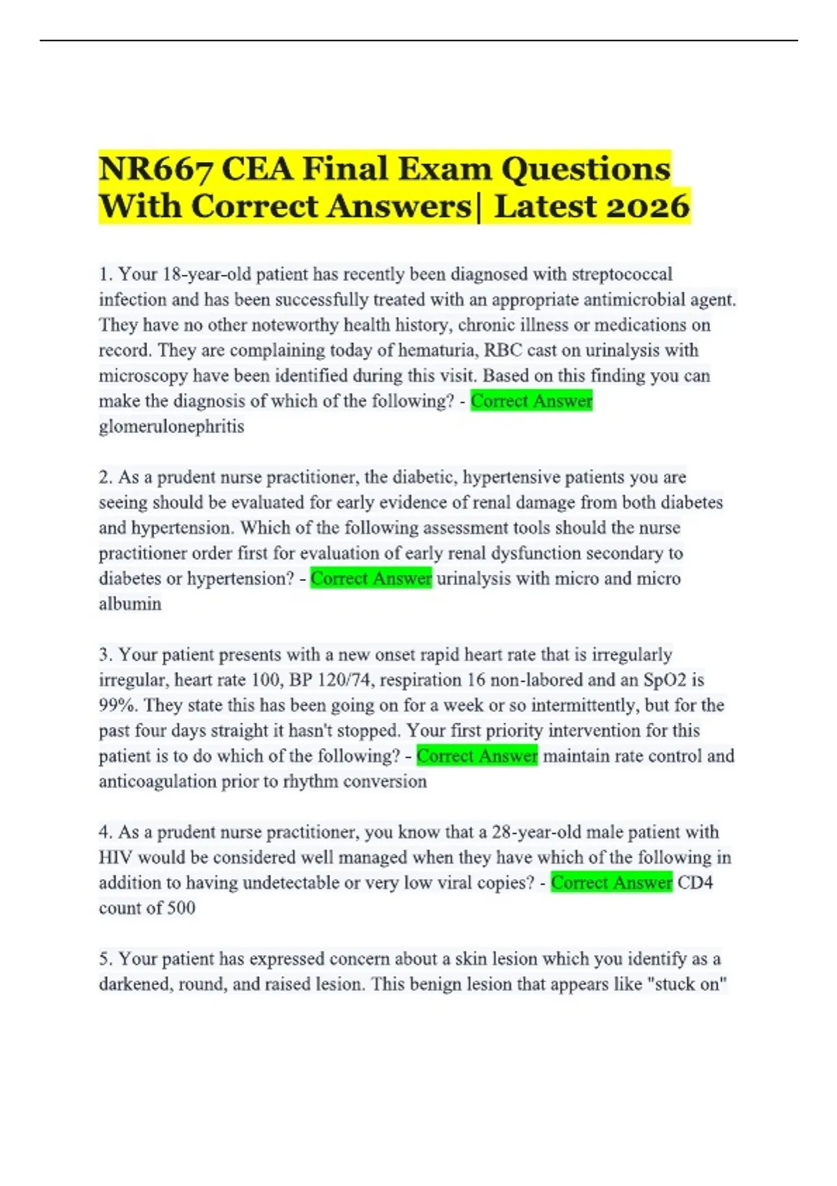NR667 CEA Final Exam Questions With Correct Answers | Latest 2026