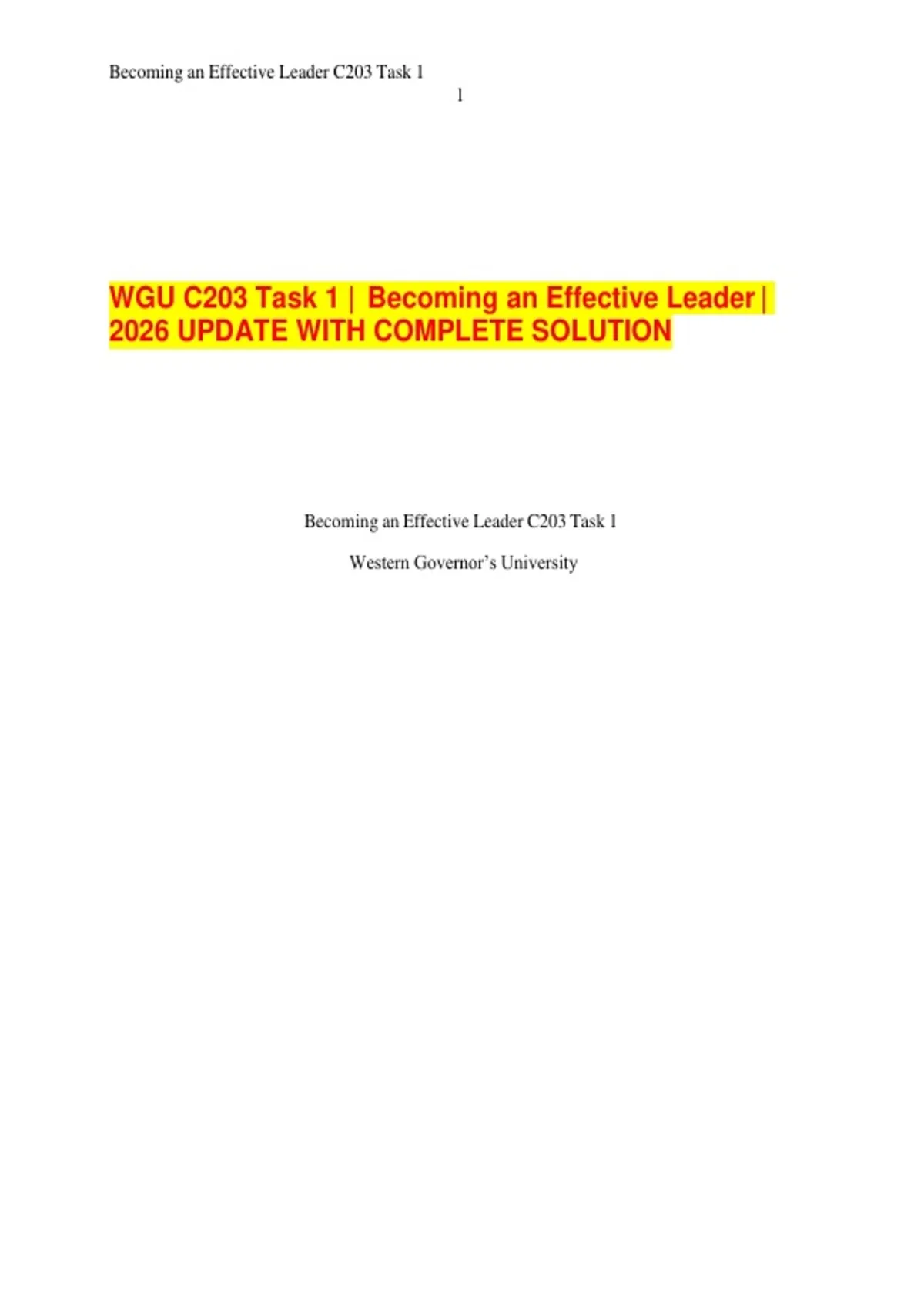 WGU C203 Task 1 | Becoming an Effective Leader | 2026 UPDATE WITH COMPLETE SOLUTION
