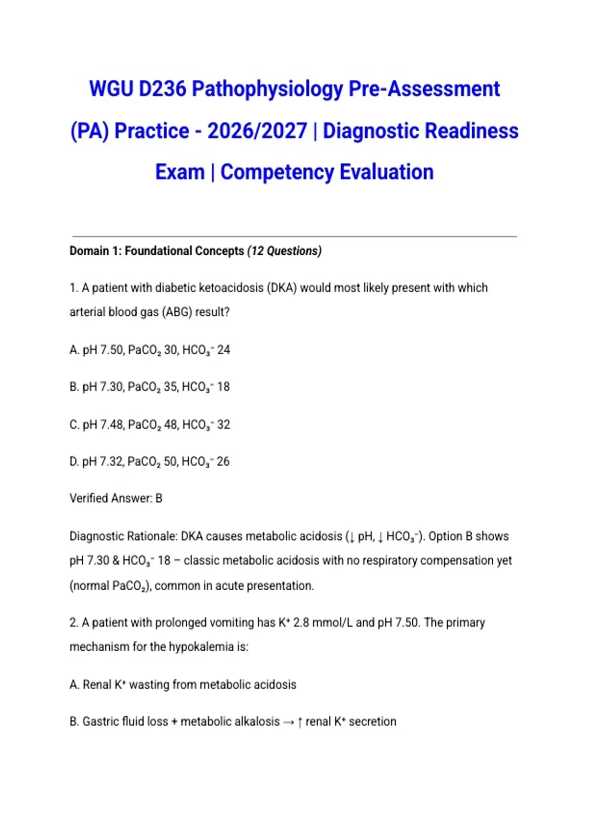 WGU D236 Pathophysiology Pre-Assessment (PA) Practice - 2026/2027 | Diagnostic Readiness Exam | Competency Evaluation