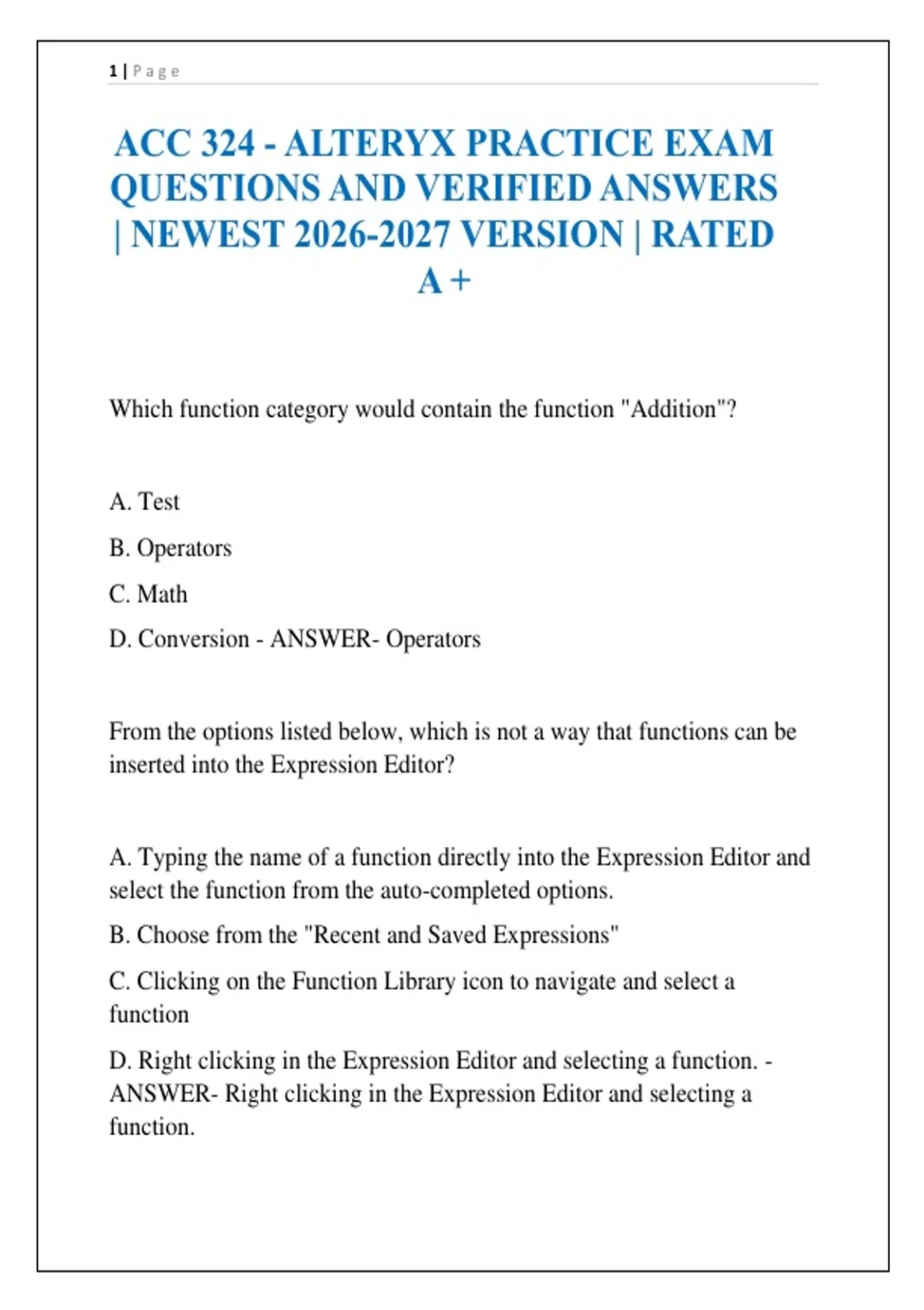 ACC 324 - ALTERYX PRACTICE EXAM