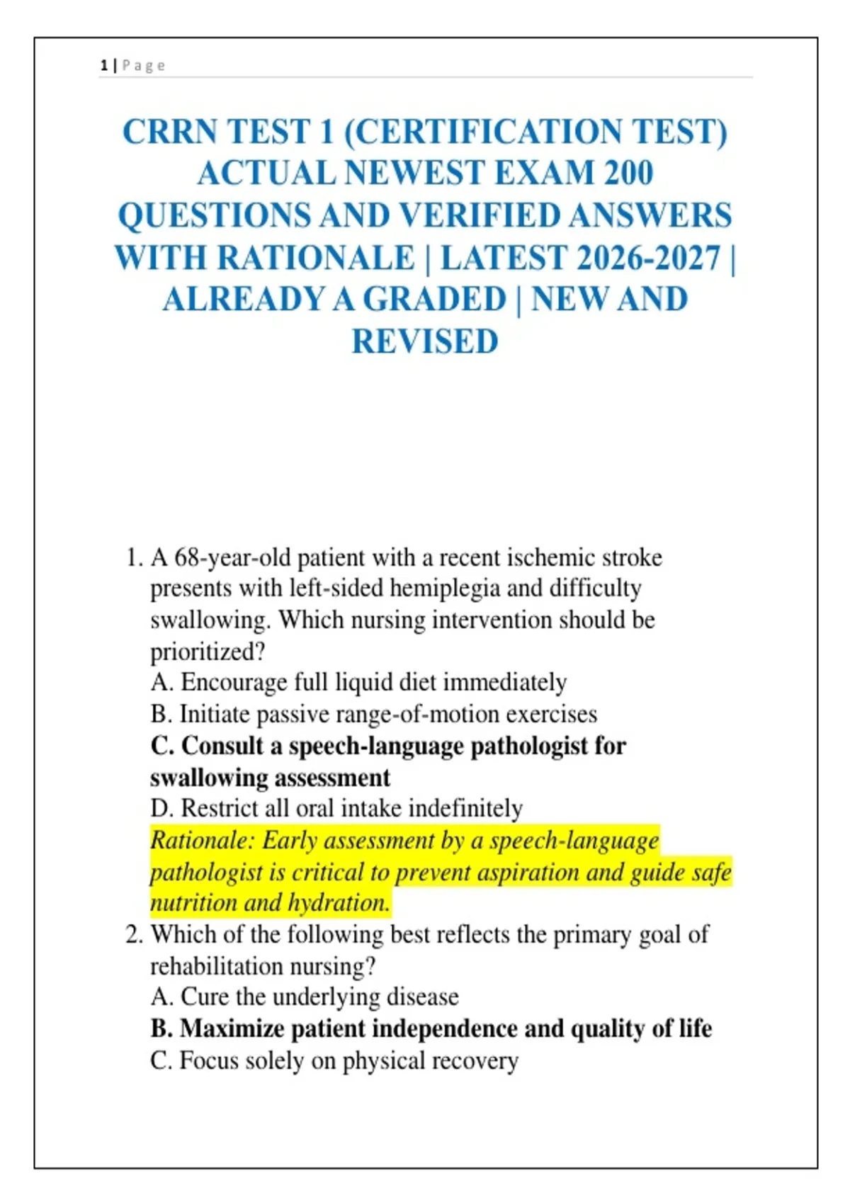 CRRN TEST 1 (CERTIFICATION TEST)