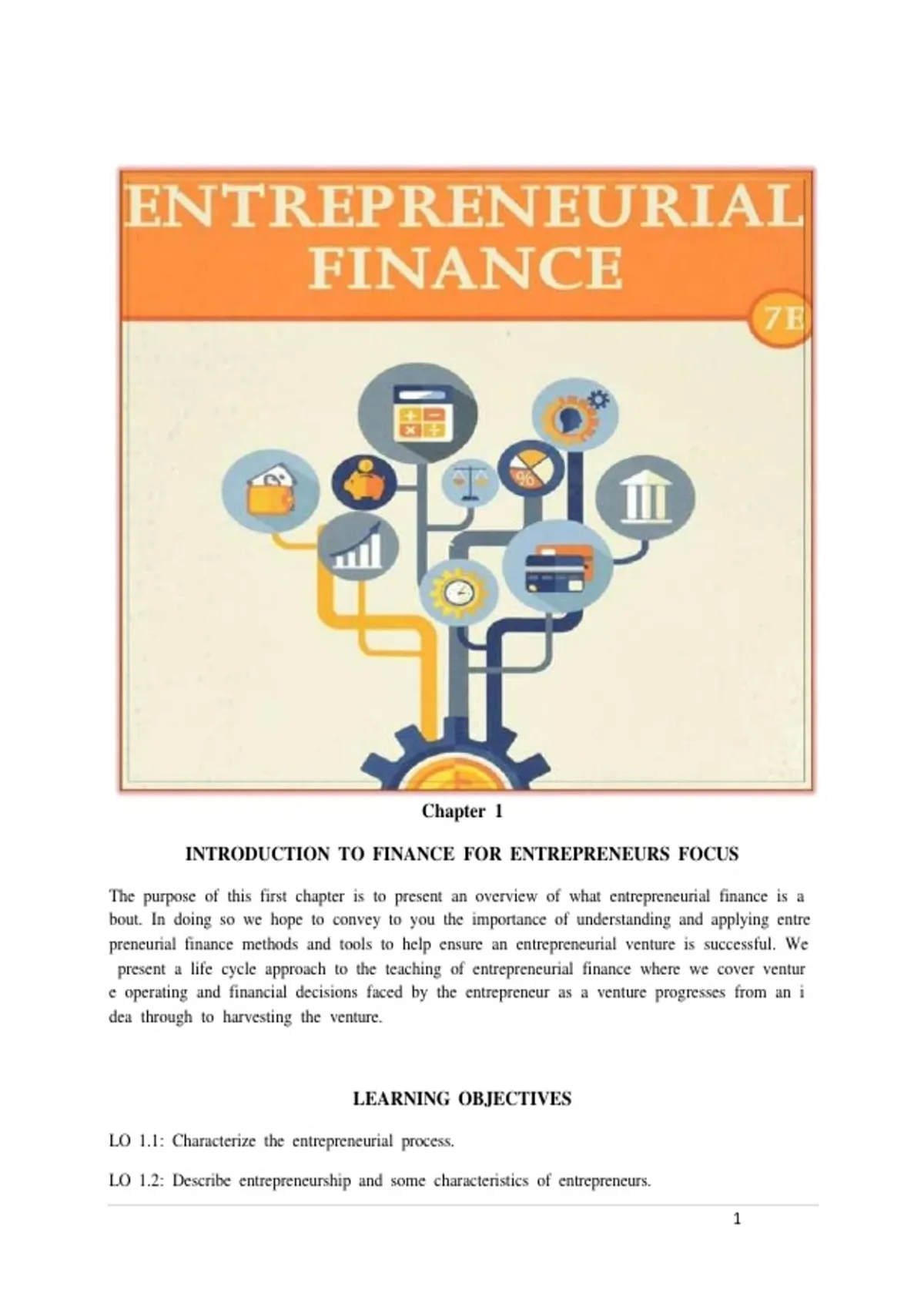 1.4 PRINCIPLES OF ENTREPRENEURIAL FINANCE