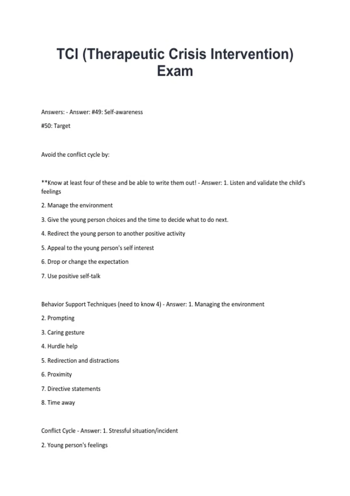 Conflict Cycle - Answer: 1. Stressful situation/incident