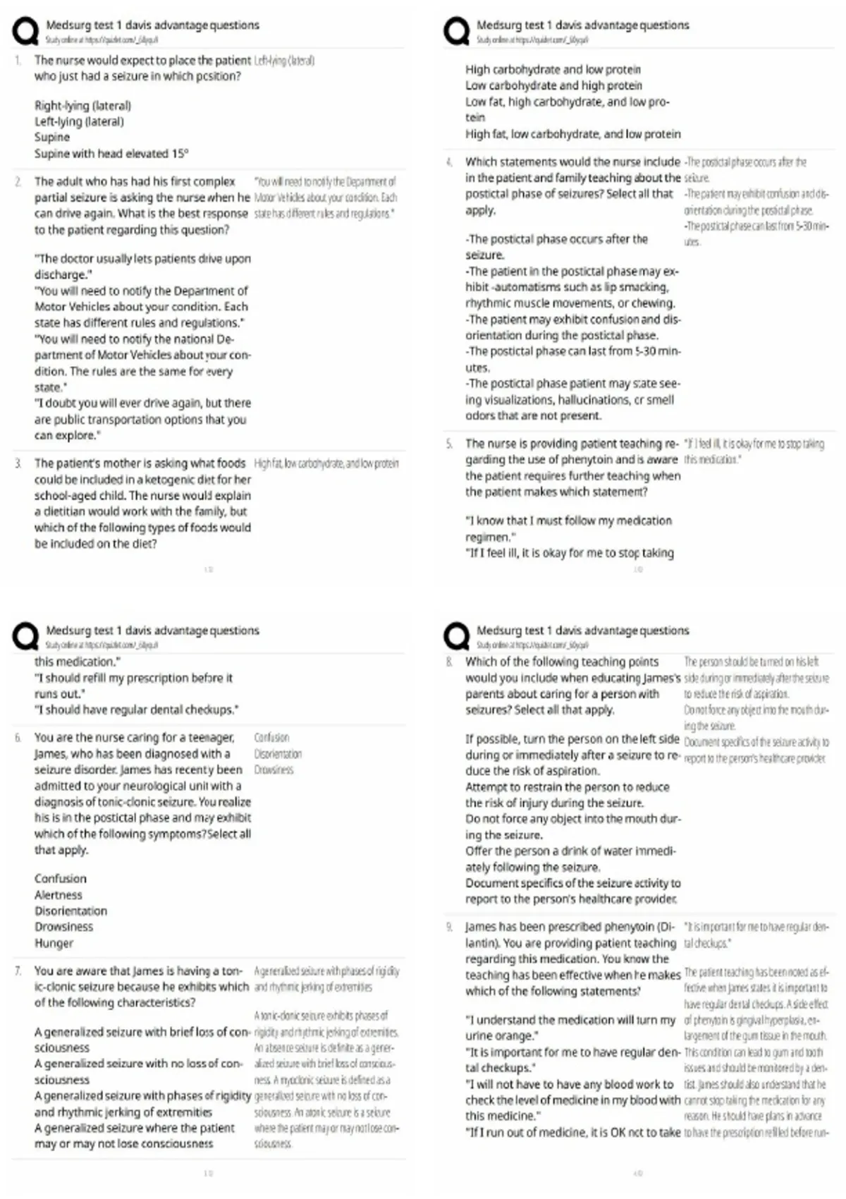 High-yield Medical-Surgical Nursing Test 1 Davis Advantage–style questions with correct answers and concise rationales. Designed for nursing students preparing for exams, quizzes, and test banks, covering core Med-Surg concepts using NCLEX-style questions (2025 update).