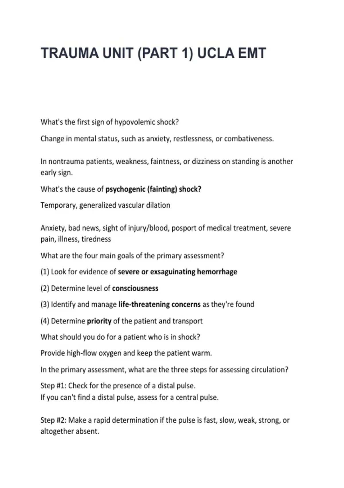 (1) Look for evidence of severe or exsaguinating hemorrhage