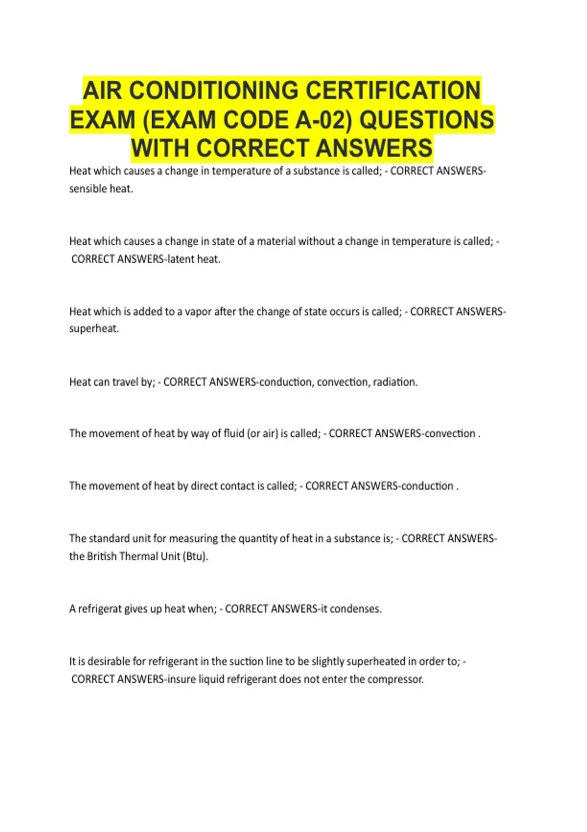AIR CONDITIONING CERTIFICATION EXAM (EXAM CODE A-02) QUESTIONS WITH CORRECT ANSWERS.pdf