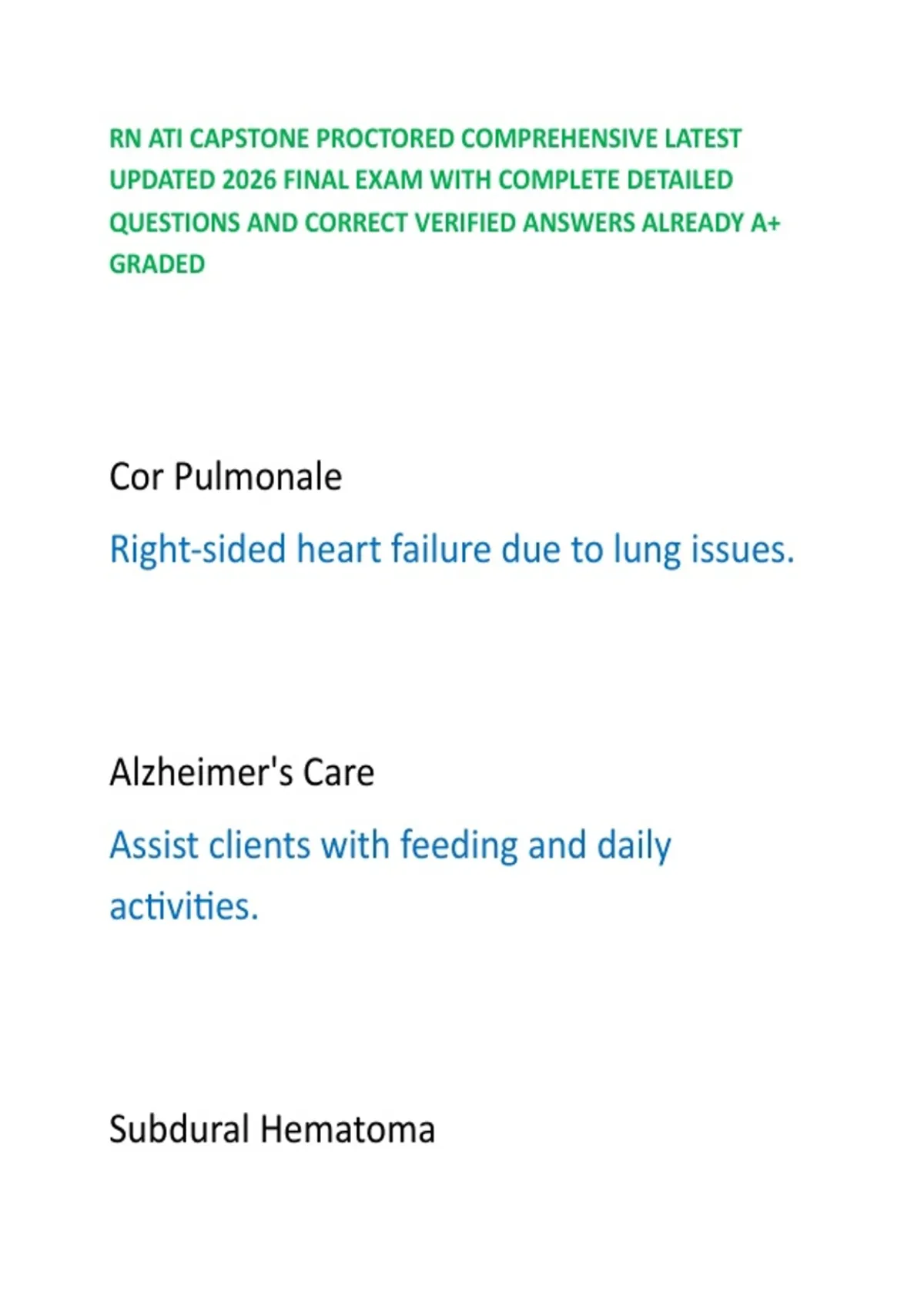 RN ATI CAPSTONE PROCTORED COMPREHENSIVE LATEST