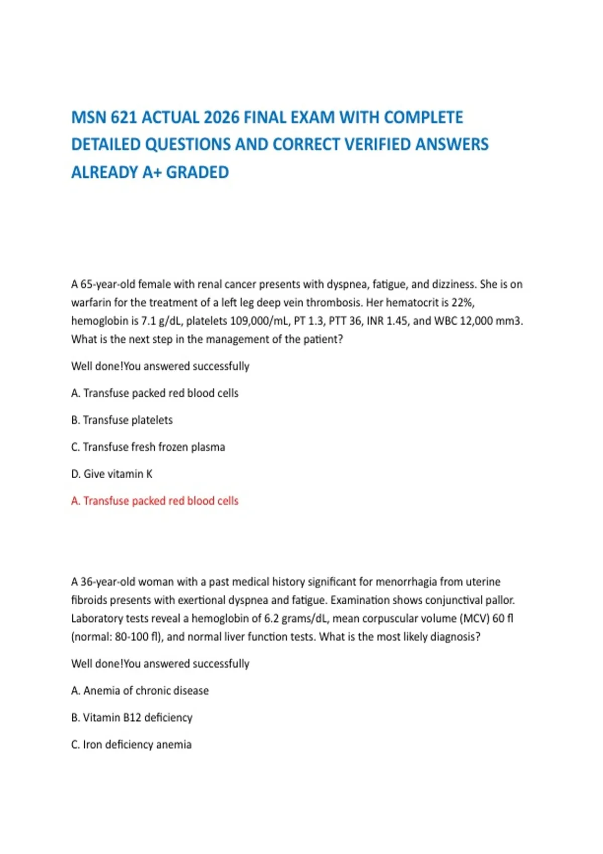 DETAILED QUESTIONS AND CORRECT VERIFIED ANSWERS