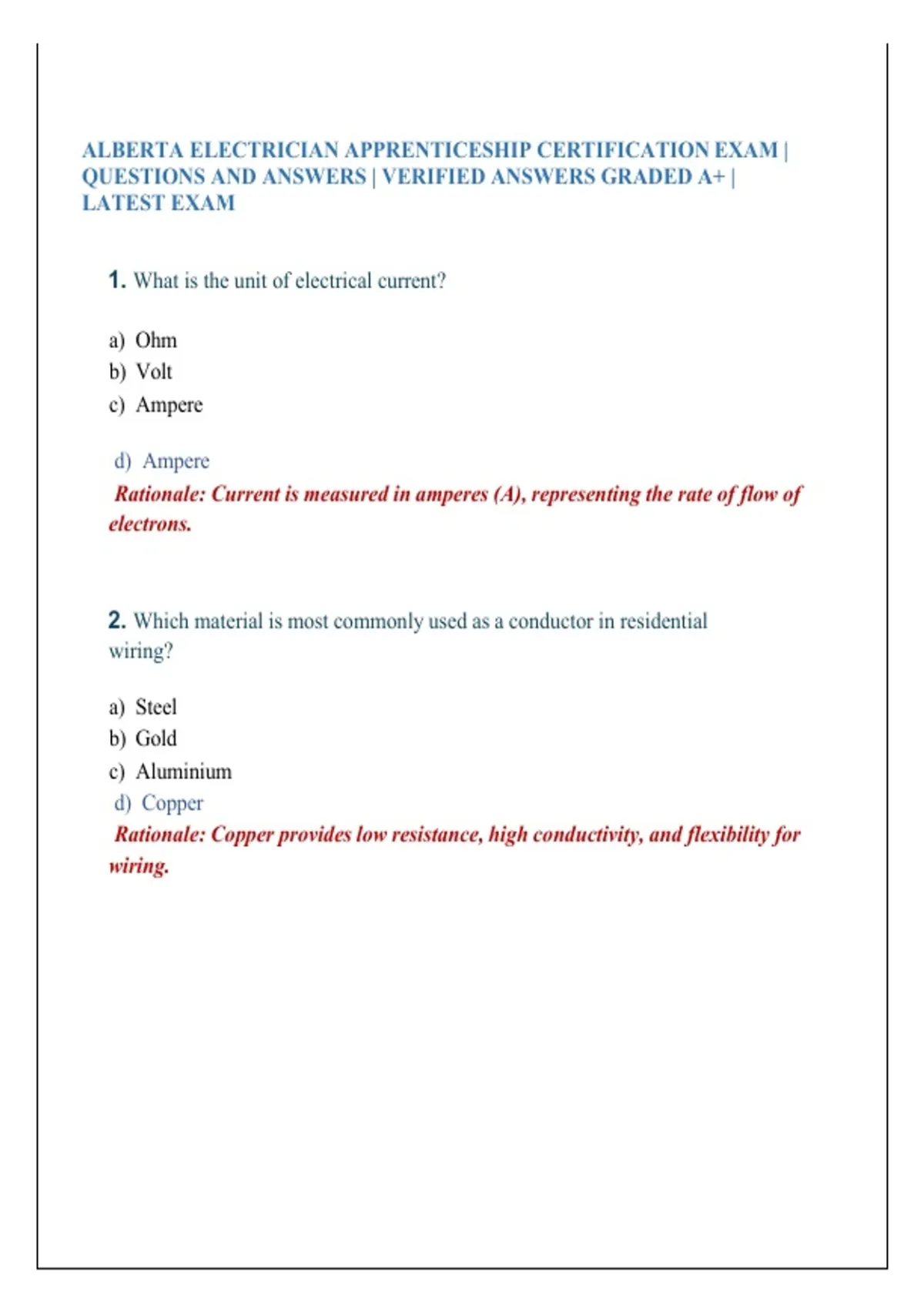 Alberta Electrician Apprenticeship Certification Exam | Converted Verified Questions & Answers 2025–2026