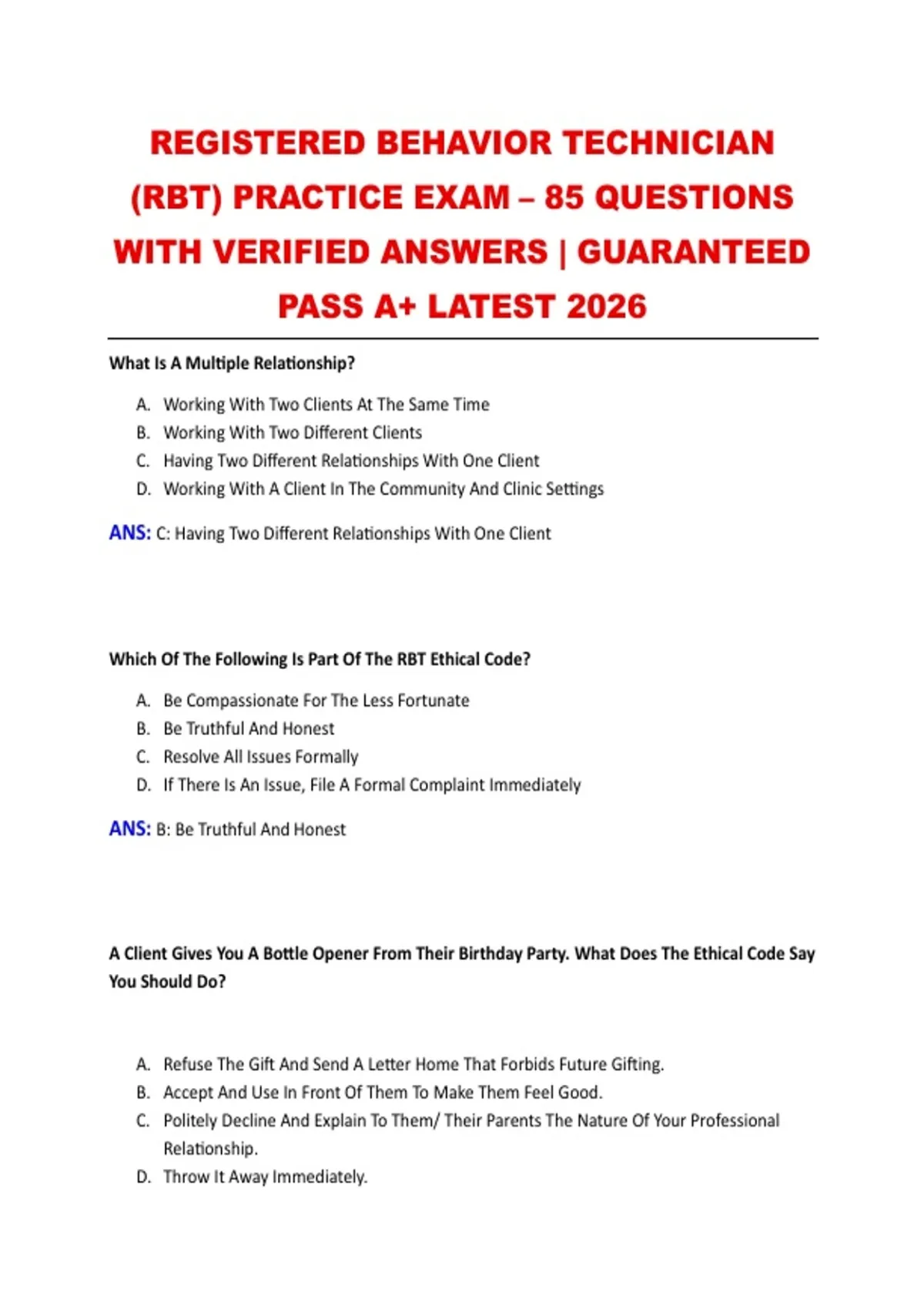 (RBT) PRACTICE EXAM – 85 QUESTIONS