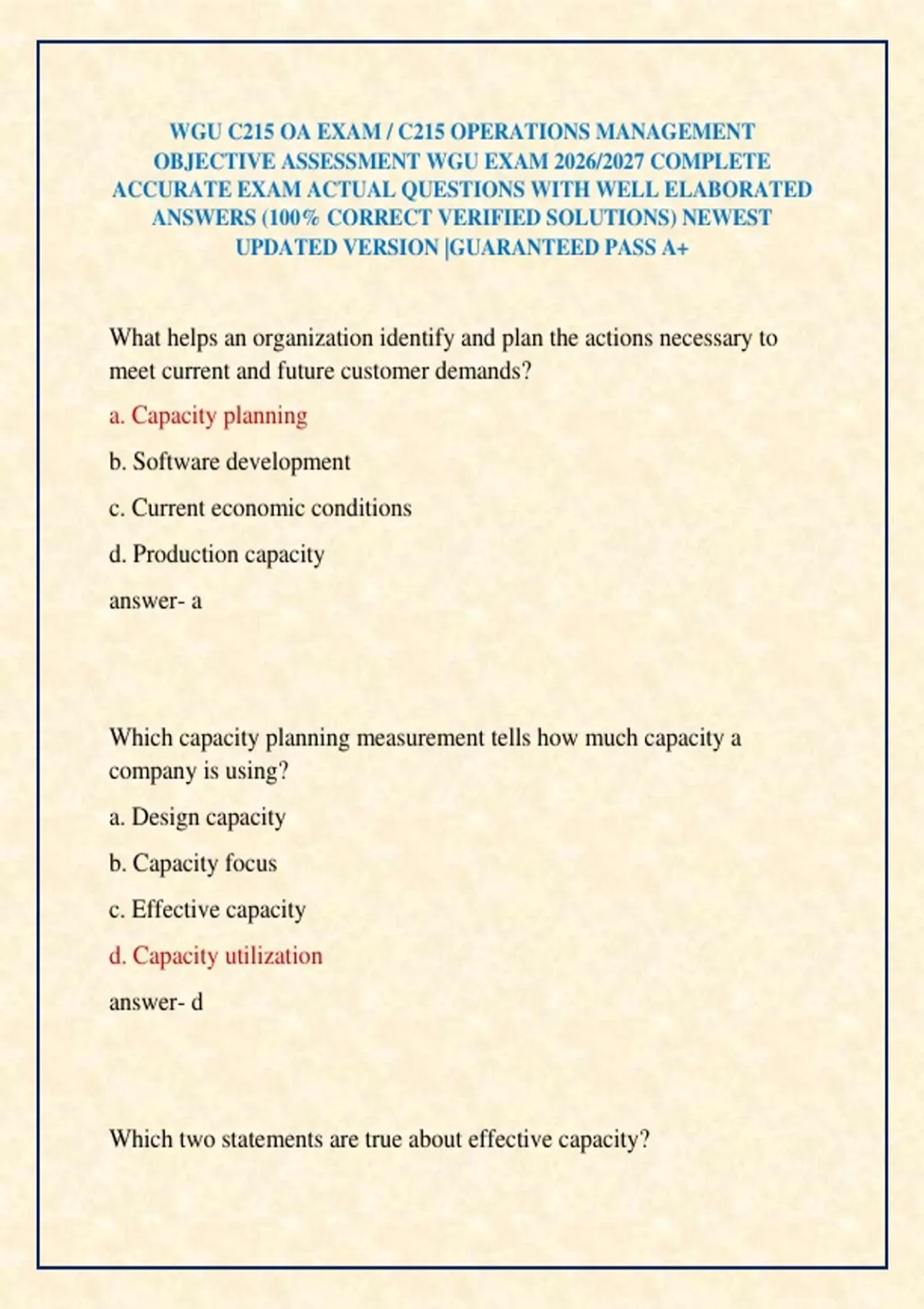 OBJECTIVE ASSESSMENT WGU EXAM 2026/2027 COMPLETE