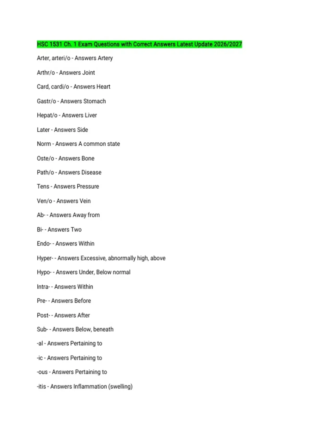-itis - Answers Inflammation (swelling)