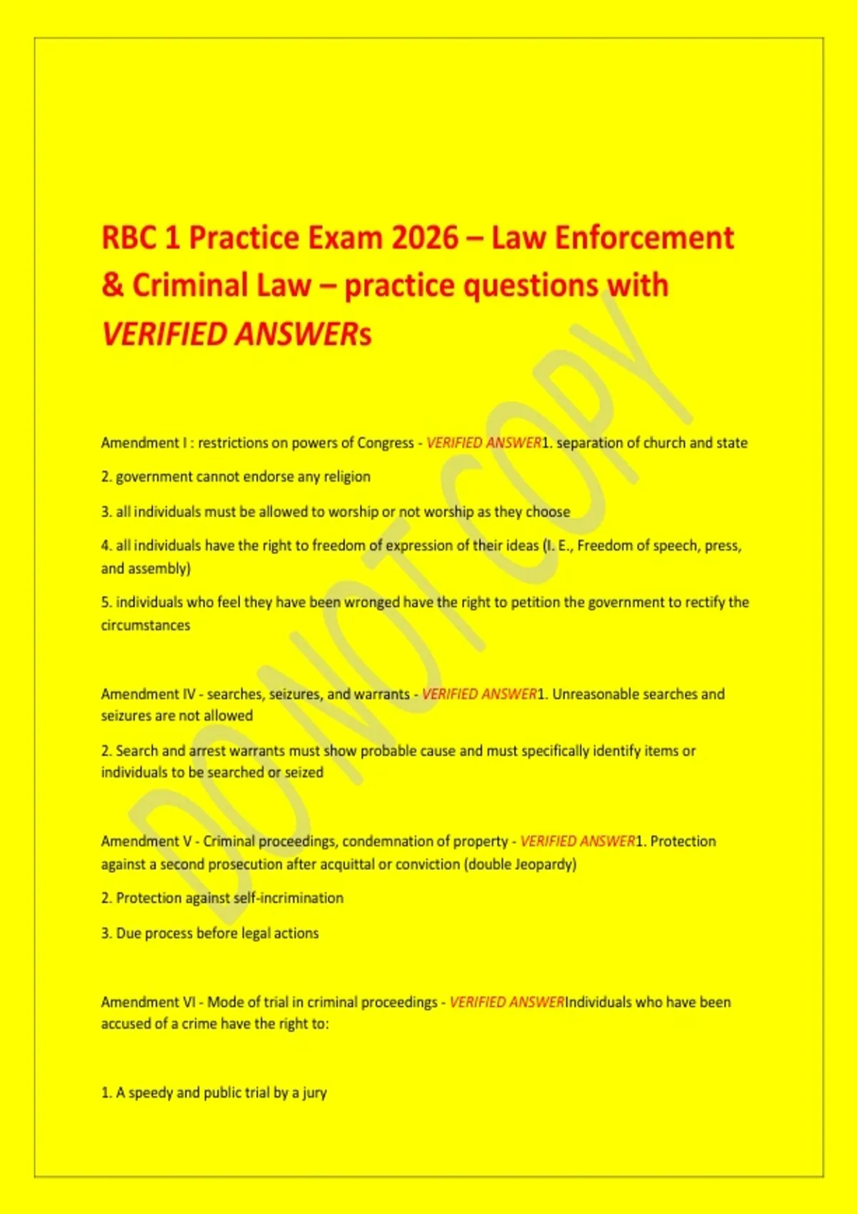 Amendment I : restrictions on powers of Congress - VERIFIED ANSWER1. separation of church and state