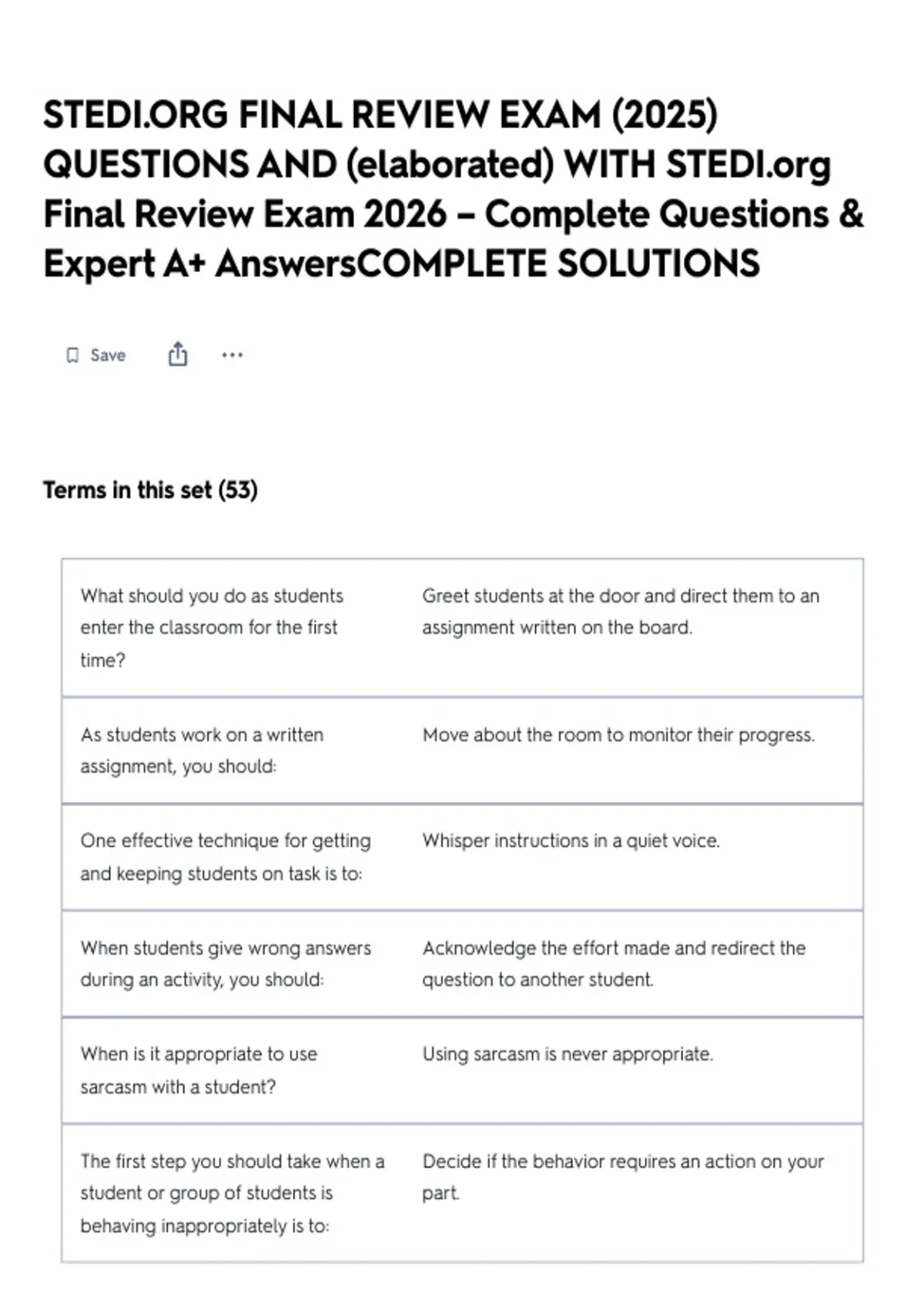 STEDI.org Final Review Exam 2026 – Complete Questions & Expert A+ Answers