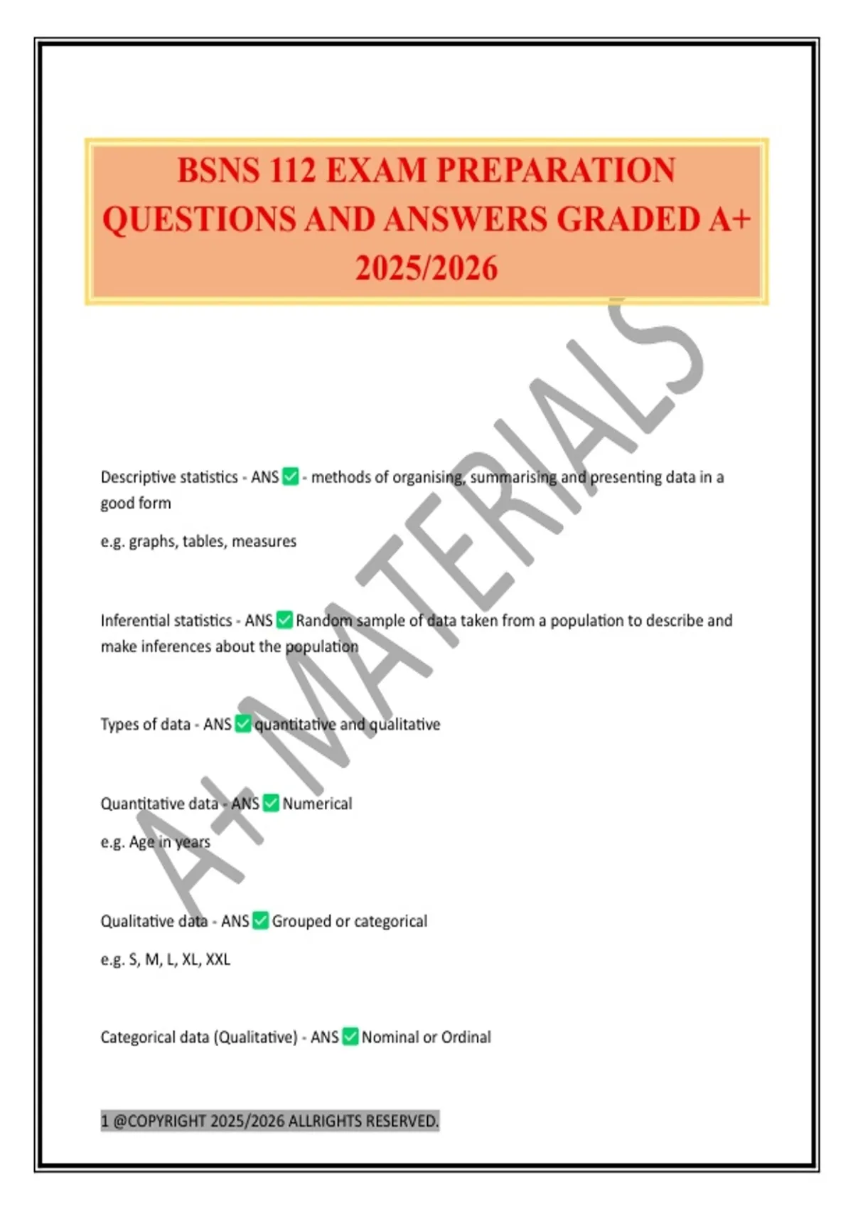 BSNS 112 EXAM PREPARATION
