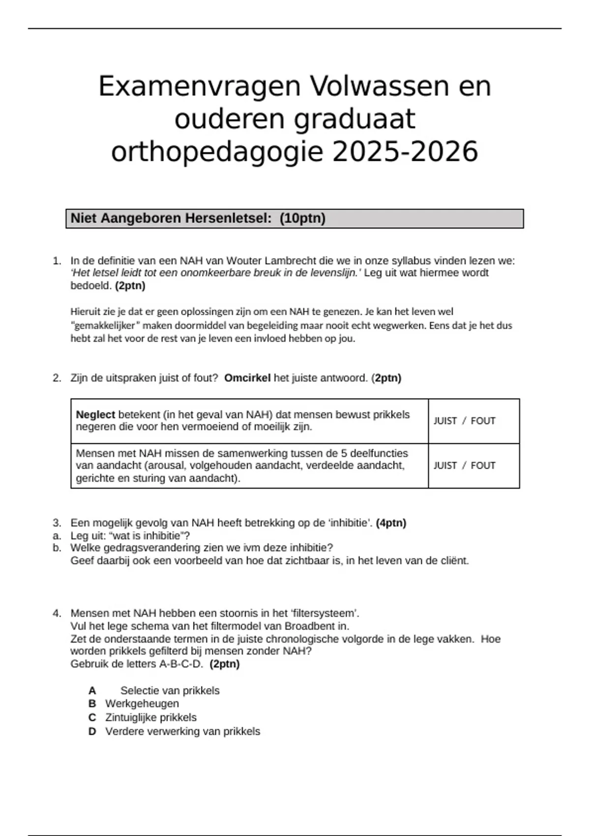 3. Een mogelijk gevolg van NAH heeft betrekking op de ‘inhibitie’. (4ptn)