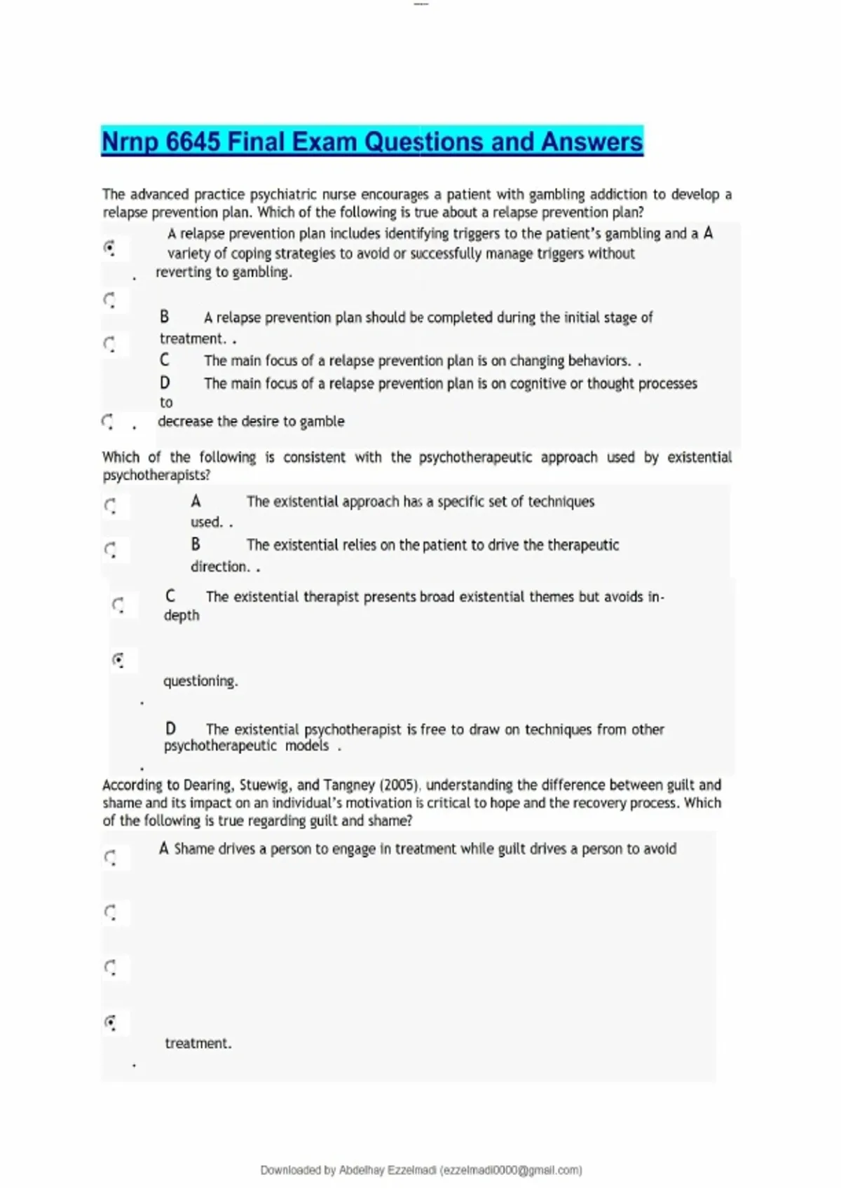 Nrnp 6645 Final Exam Questions and AnswersNrnp 6645 Final Exam Questions and Answers
