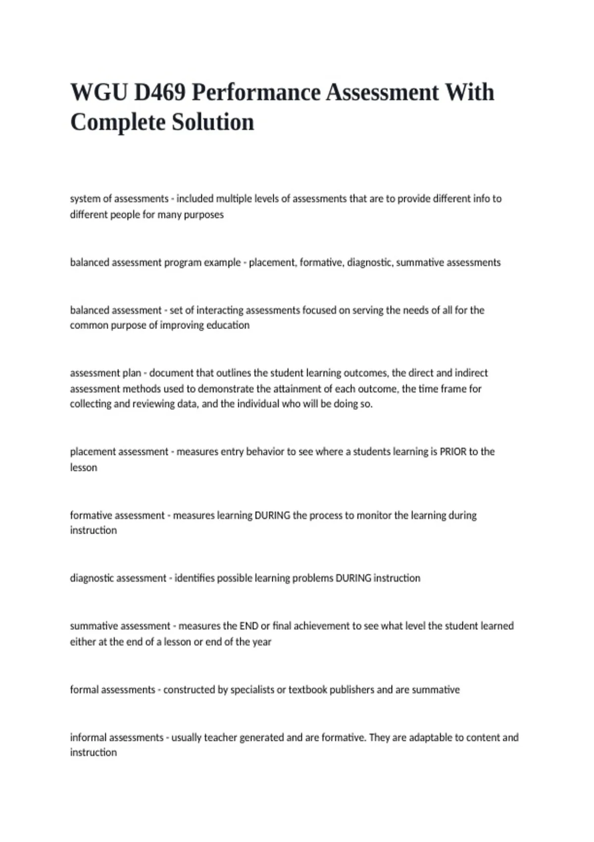 balanced assessment program example - placement, formative, diagnostic, summative assessments