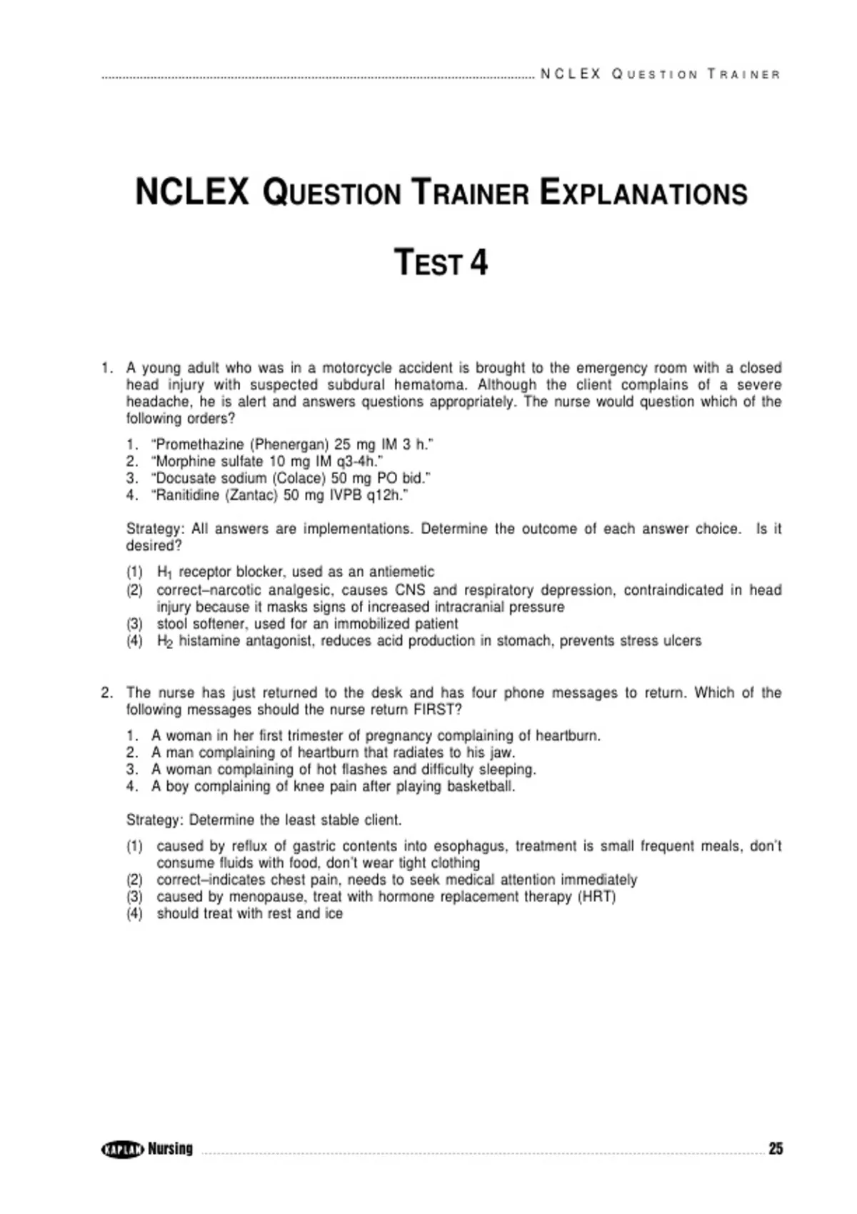 NCLEX QUESTION TRAINER EXPLANATIONS