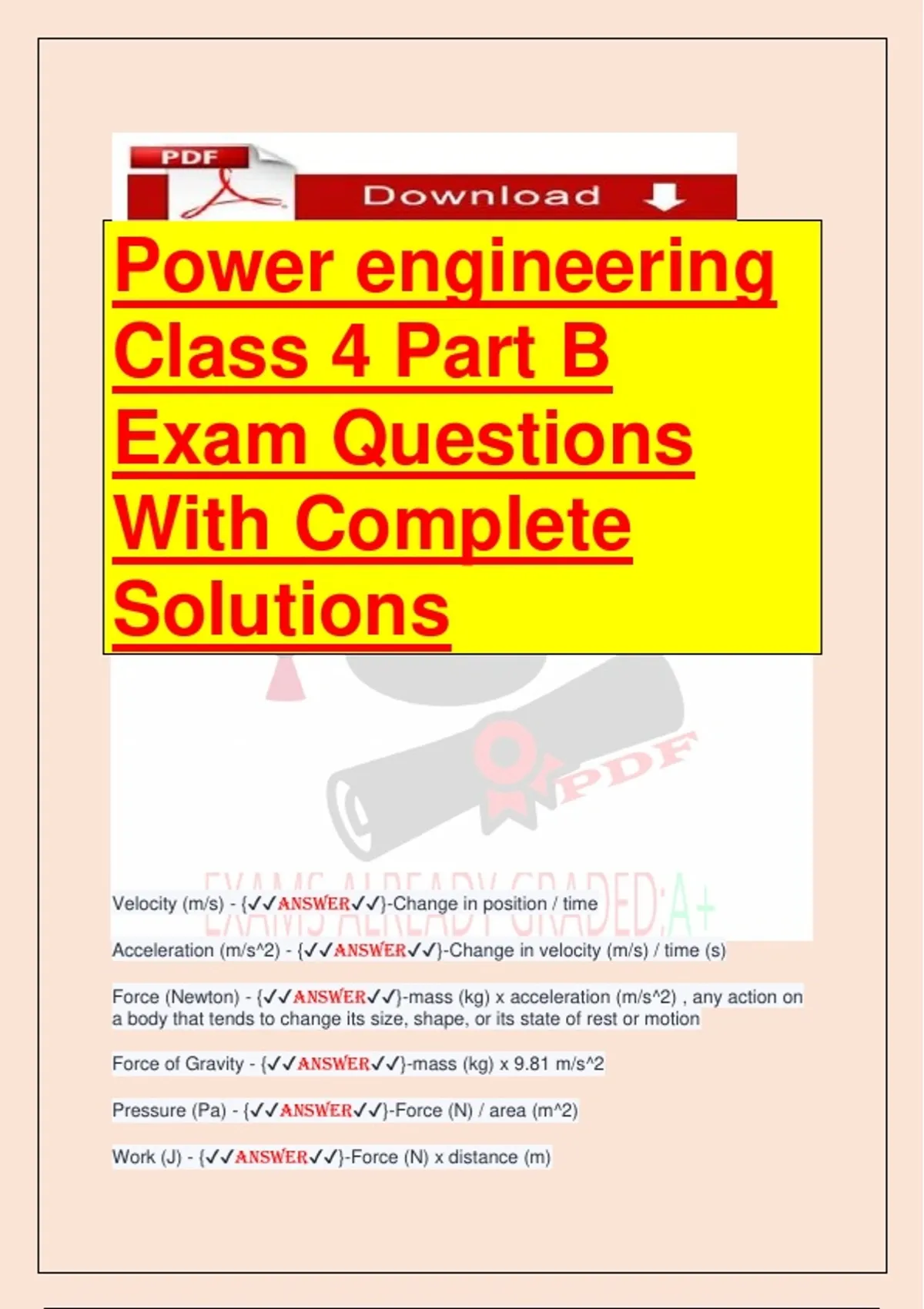 Power engineering Class 4 Part B Exam Questions With Complete Solutions