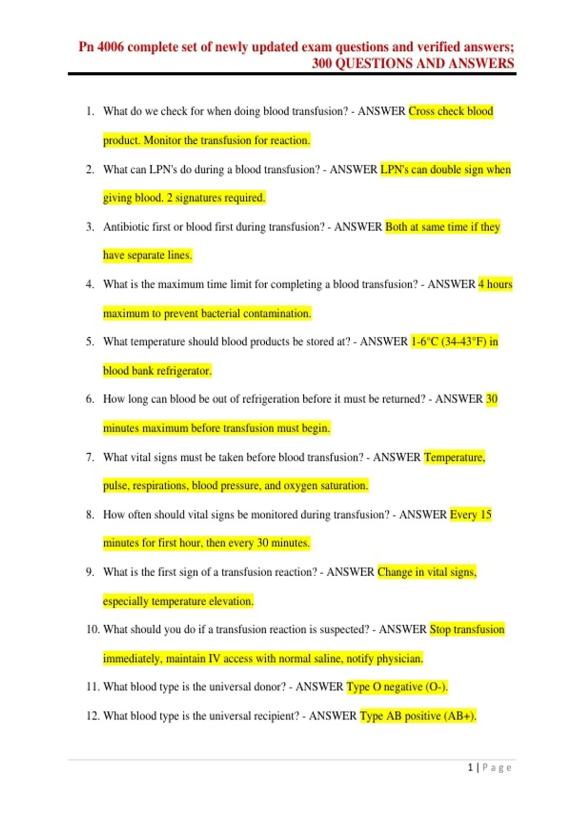 ,Pn 4006 complete set of newly updated exam questions and verified answers;