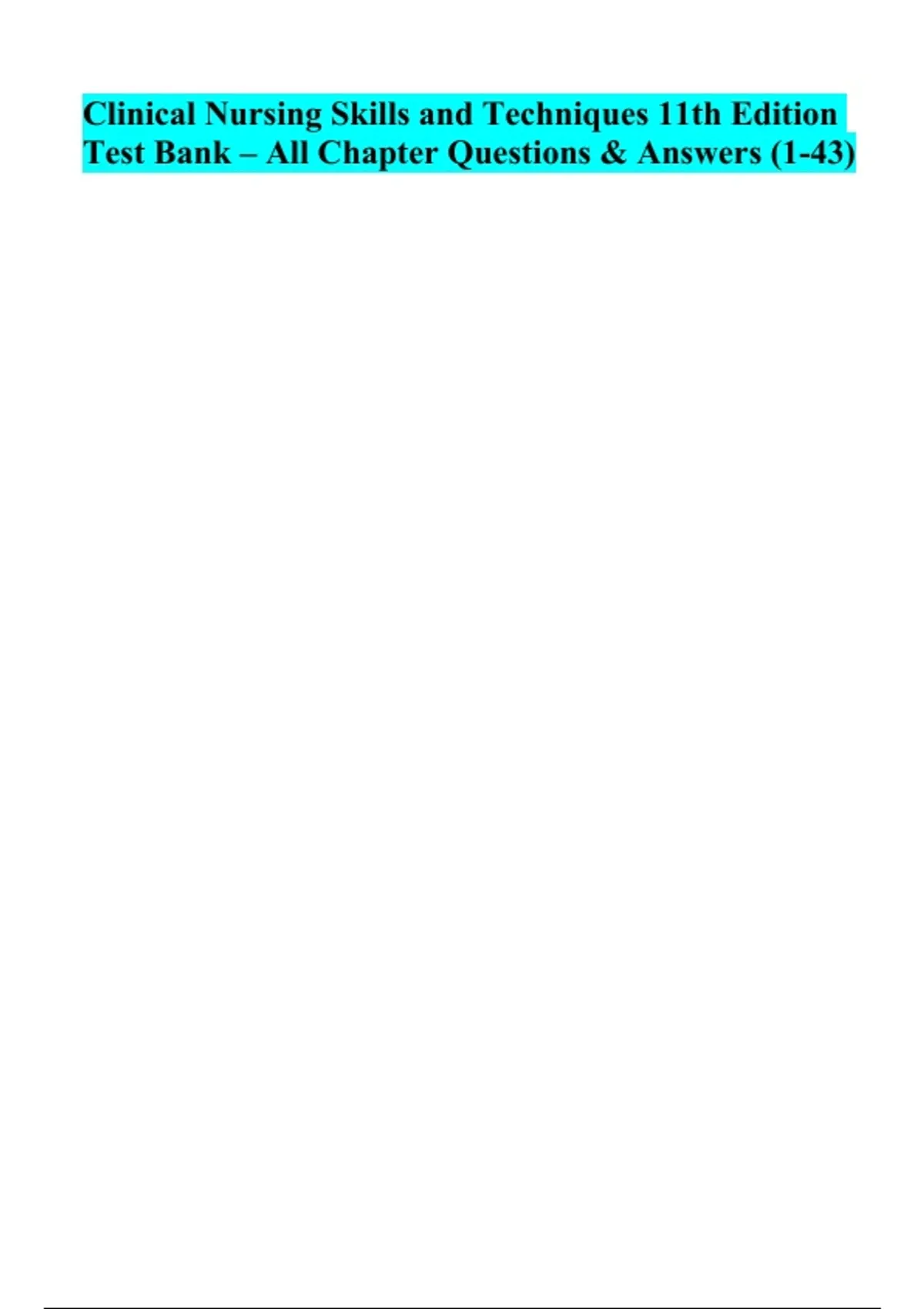 Clinical Nursing Skills & Techniques 11th Edition Test Bank | Complete Chapters 1-43 Q&A