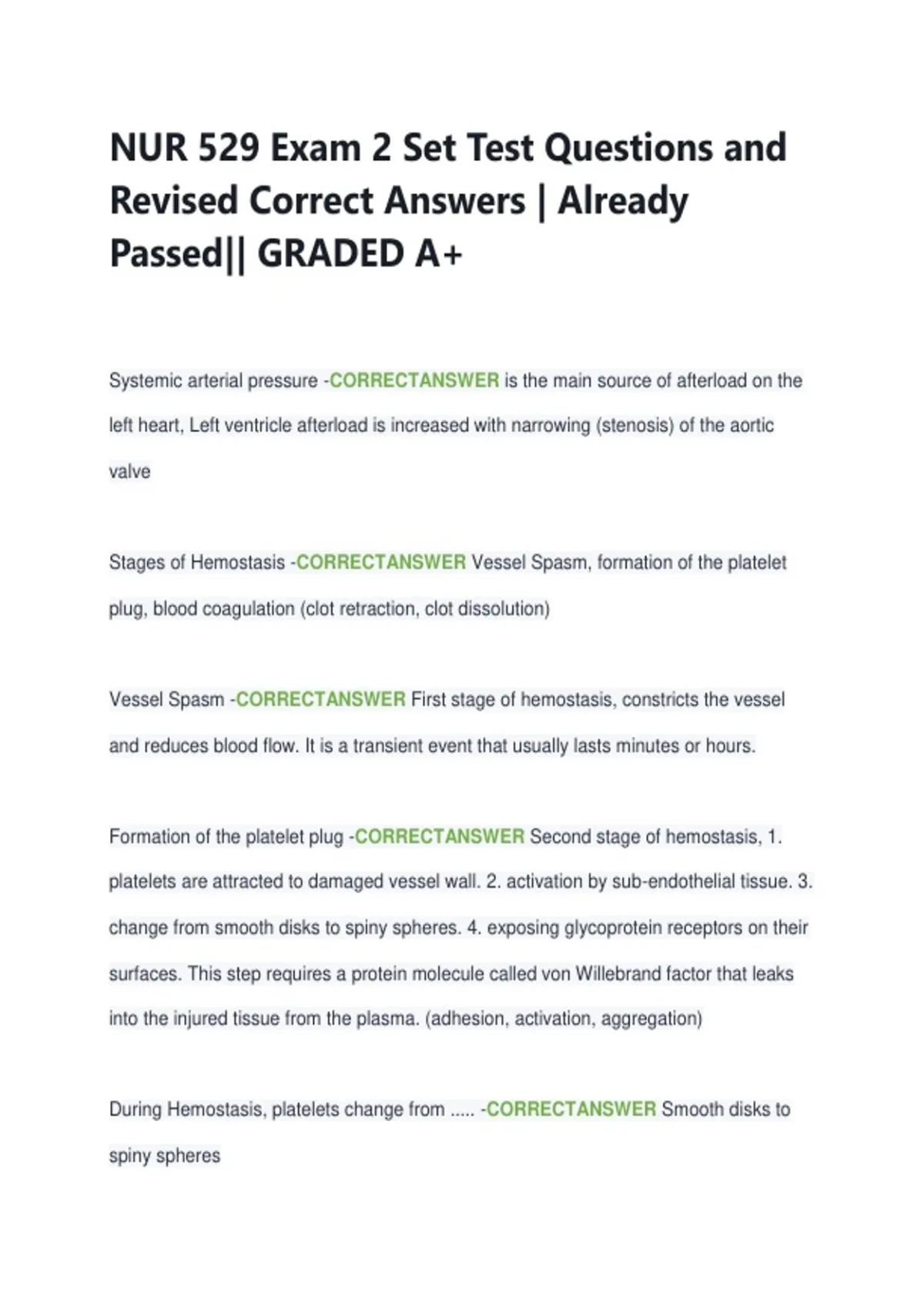 NUR 529 Exam 2 Set Test Questions and Revised Correct Answers | Already Passed|| GRADED A+