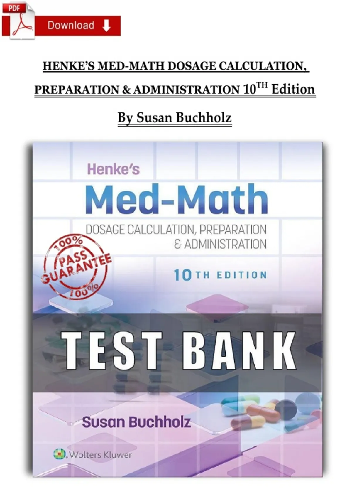 Test Bank - Henke's Med-Math Dosage-Calculation, Preparation, and Administration, 10th Edition (Buchholz, 2026) All chapters