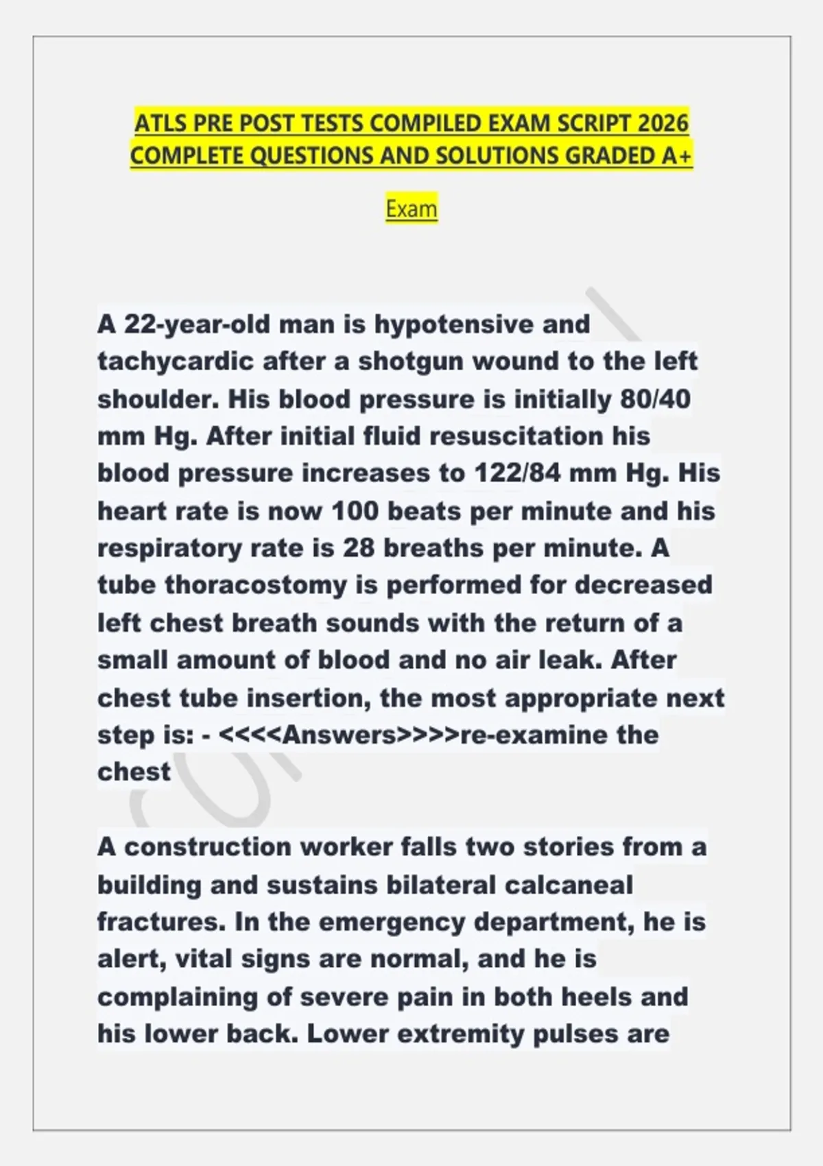 ATLS PRE POST TESTS COMPILED EXAM SCRIPT 2026 COMPLETE QUESTIONS AND SOLUTIONS GRADED A+ Exam