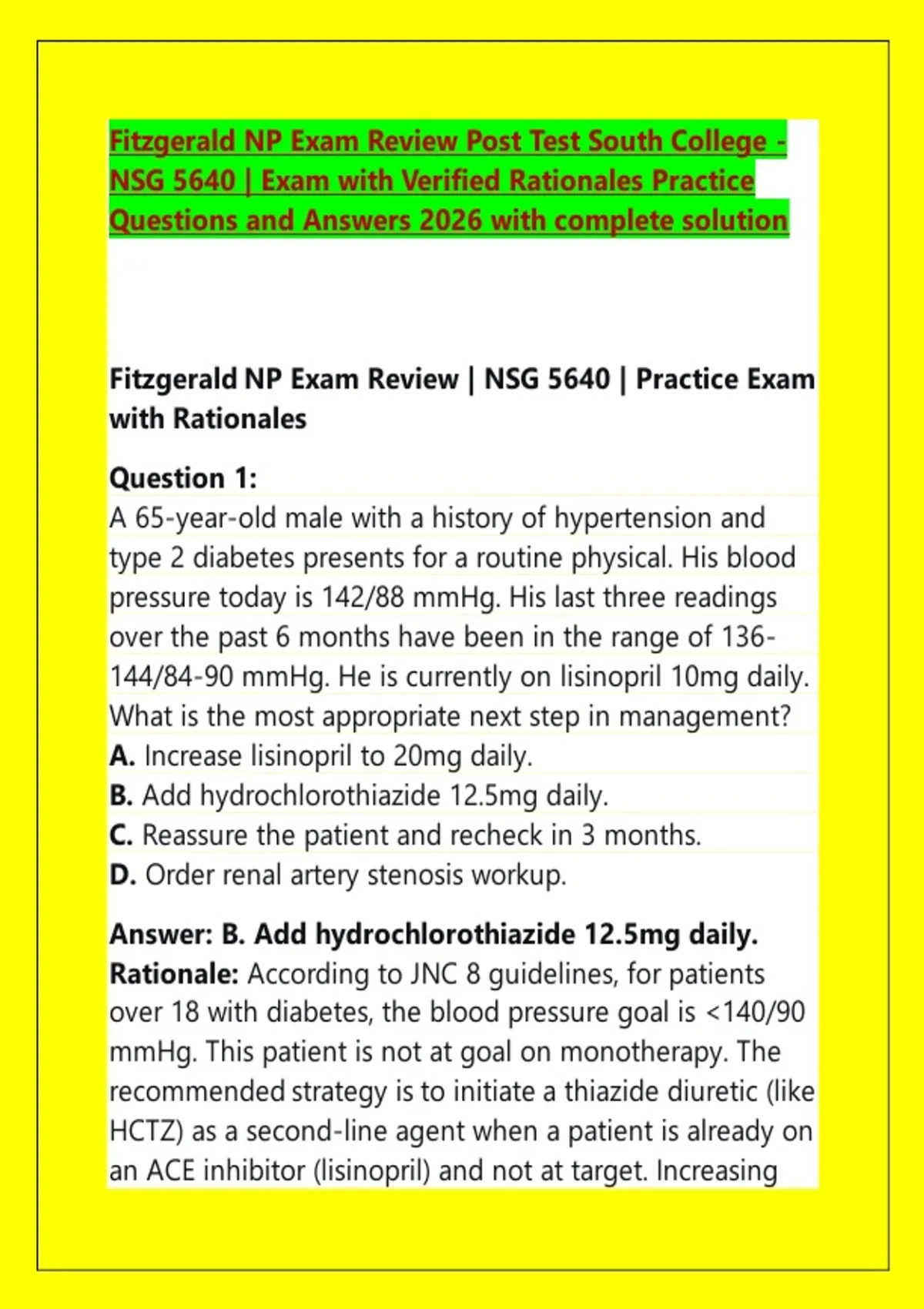 Fitzgerald NP Exam Review | NSG 5640 | Practice Exam