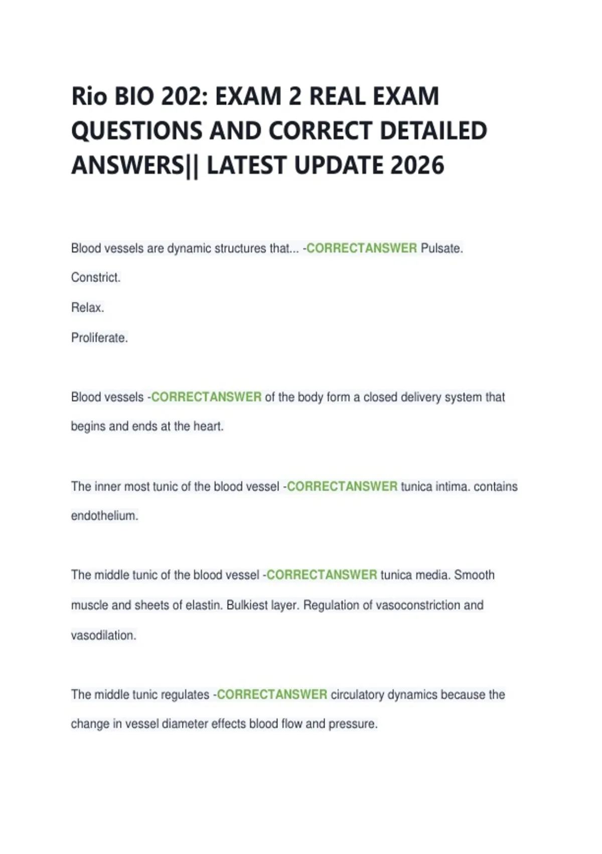 Rio BIO 202: EXAM 2 REAL EXAM QUESTIONS AND CORRECT DETAILED ANSWERS|| LATEST UPDATE 2026