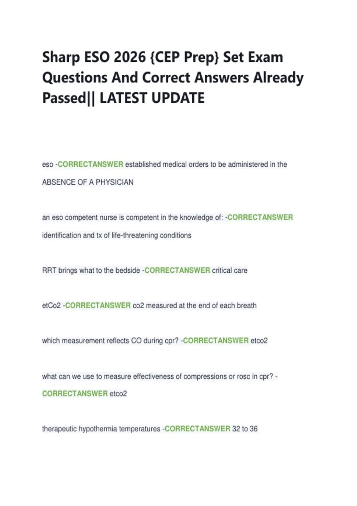 Sharp ESO 2026 {CEP Prep} Set Exam Questions And Correct Answers Already Passed|| LATEST UPDATE