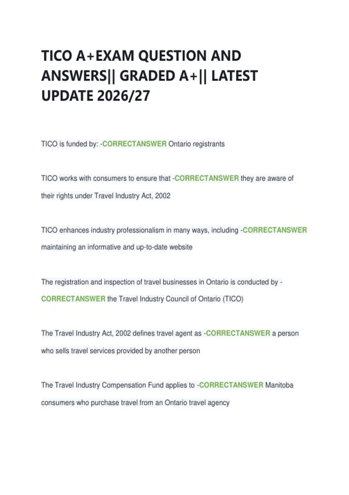 TICO A+EXAM QUESTION AND ANSWERS|| GRADED A+|| LATEST UPDATE 2026/27