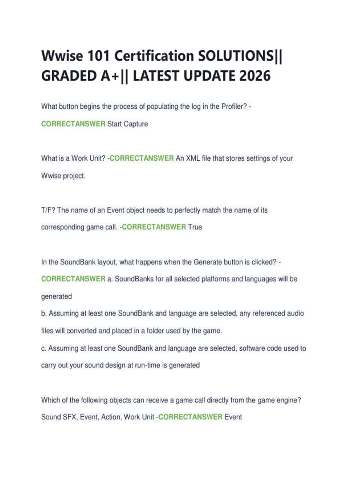 Wwise 101 Certification SOLUTIONS|| GRADED A+|| LATEST UPDATE 2026