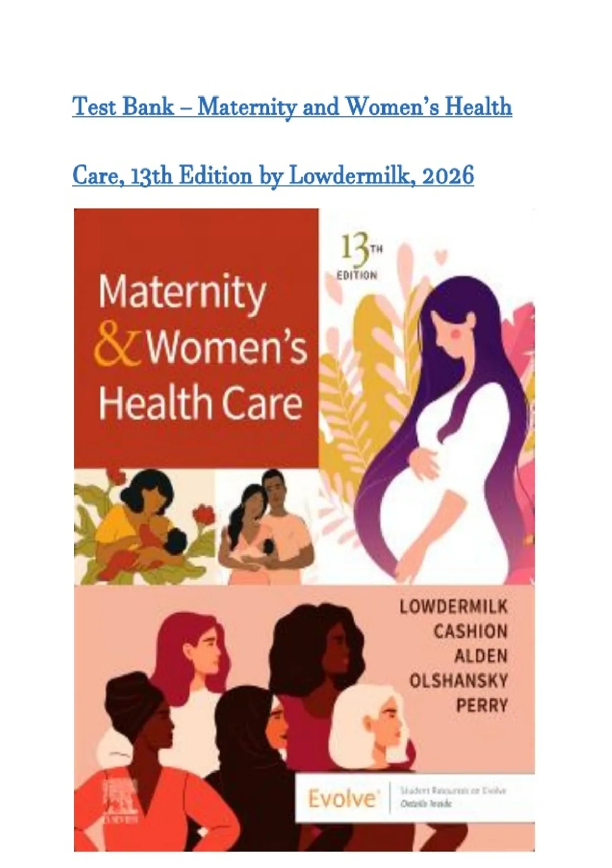 Test Bank - Maternity and Women’s Health Care, 13th Edition (Lowdermilk, 2026) Latest Edition