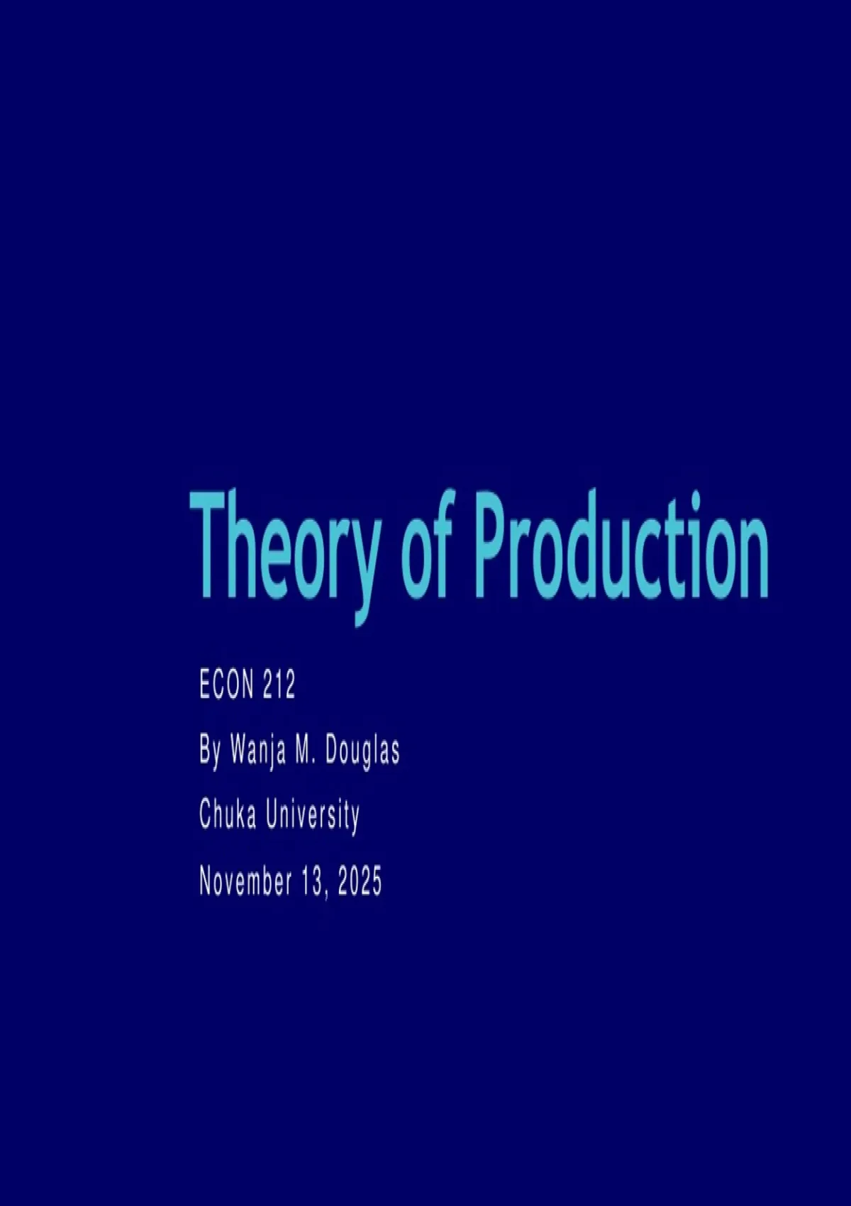 • Welcome to the Theory of Production. Having extensively covered the