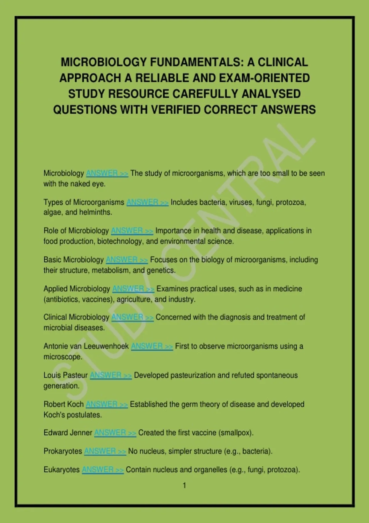This document offers a reliable, exam-oriented study resource for Microbiology Fundamentals: A Clinical Approach, featuring carefully analysed questions with verified correct answers. It is designed to strengthen conceptual understanding, support clinical reasoning, and improve exam performance through targeted practice.