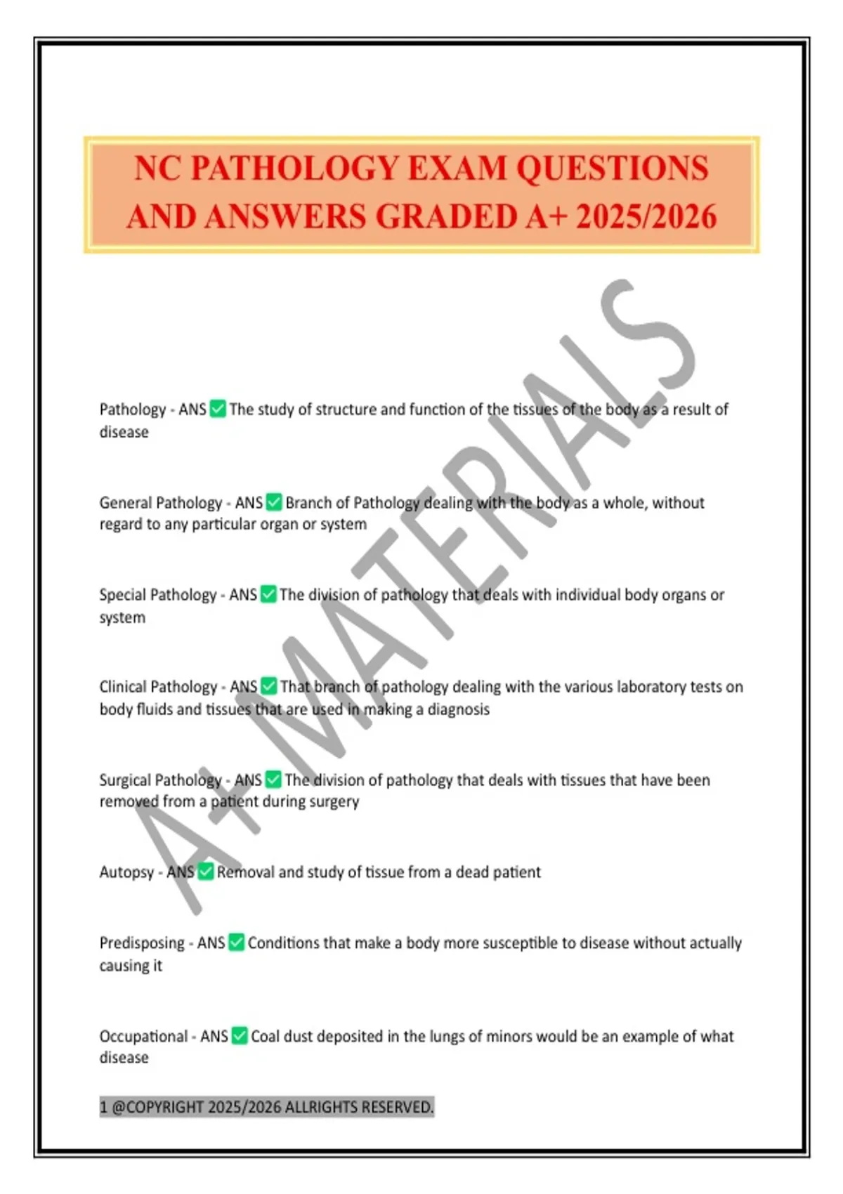 NC PATHOLOGY EXAM QUESTIONS
