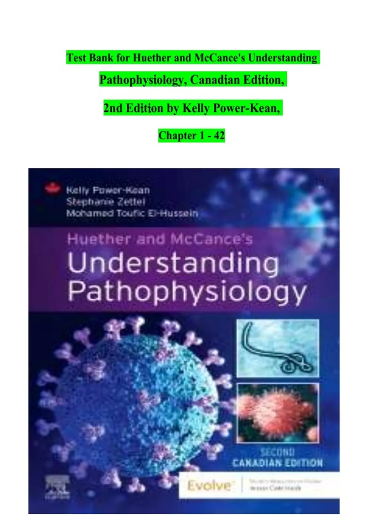 Complete test bank for Huether & McCance's Understanding Pathophysiology, Canadian 2nd Edition by Kelly Power-Kean et al. Covers all chapters 1-42 for comprehensive pathophysiology exam preparation in Canadian nursing and health science programs