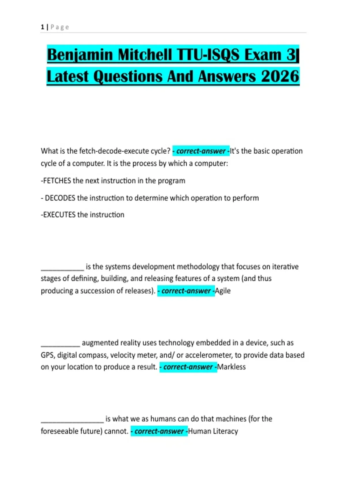 Benjamin Mitchell TTU-ISQS Exam 3|