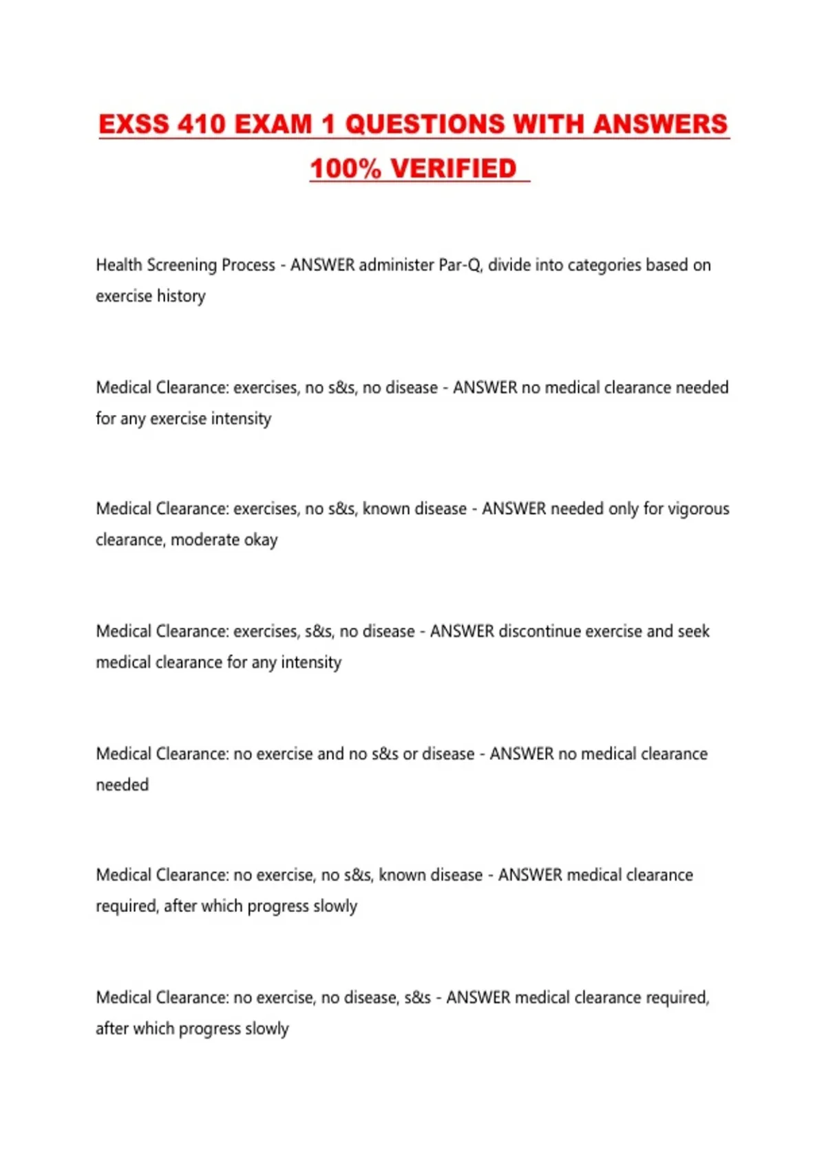 EXSS 410 EXAM 1 QUESTIONS WITH ANSWERS