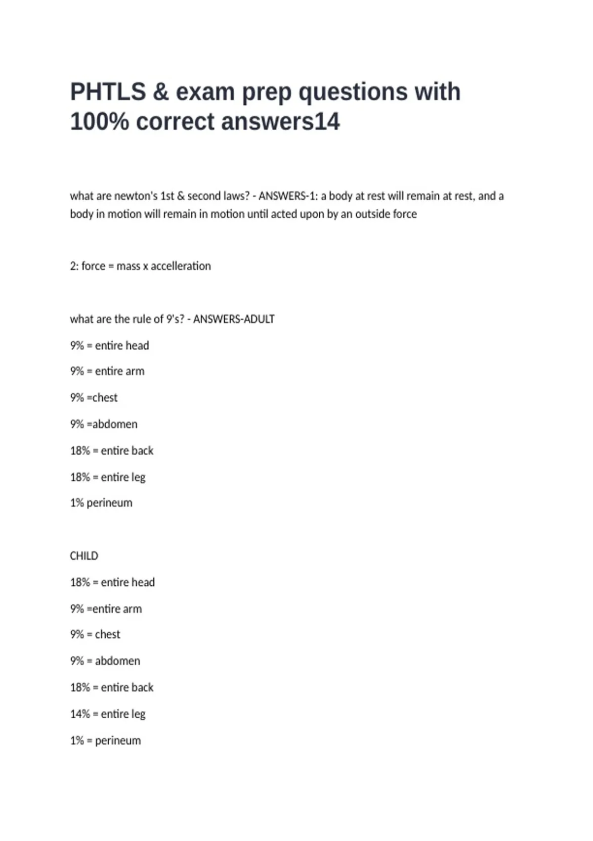 PHTLS & exam prep questions with 100- correct answers